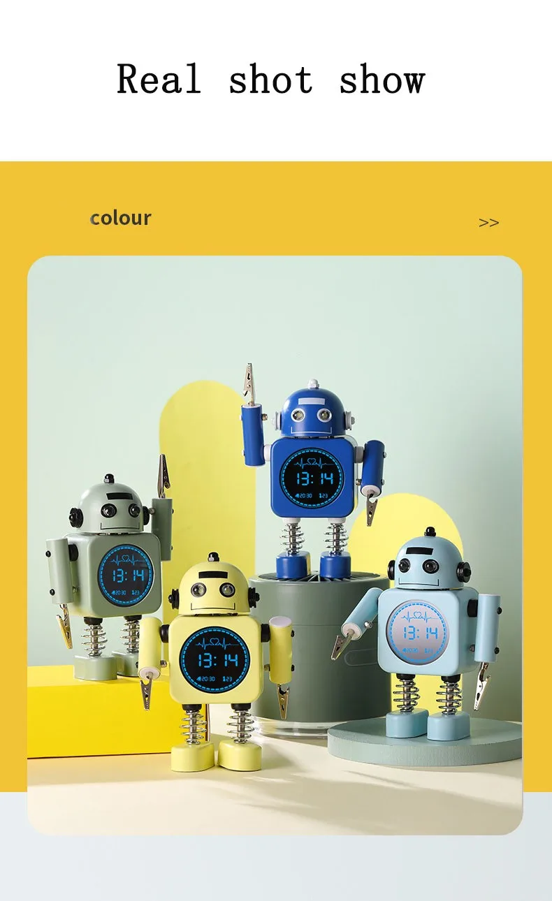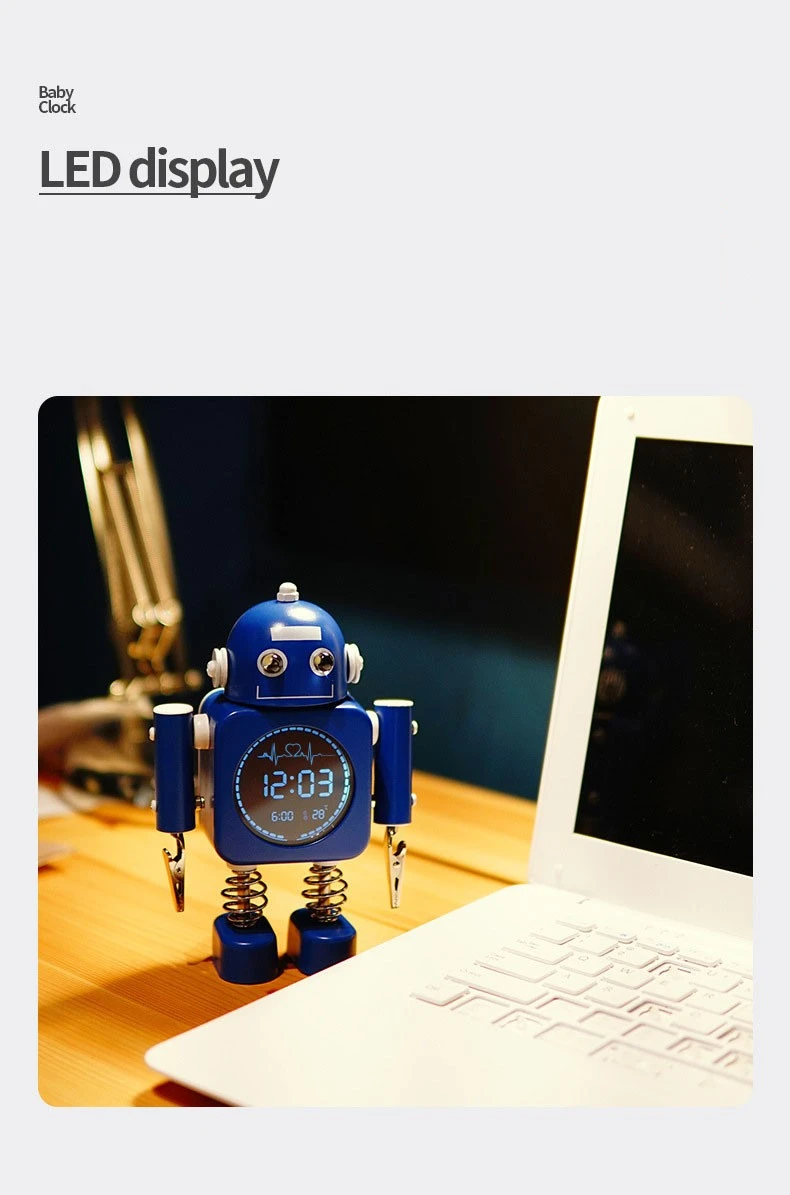 1. Светодиодный экран с подсветкой, ЖК-часы, будильник, температура, сердцебиение, анимация круга дыхания.Робот-Будильник-1 шт.