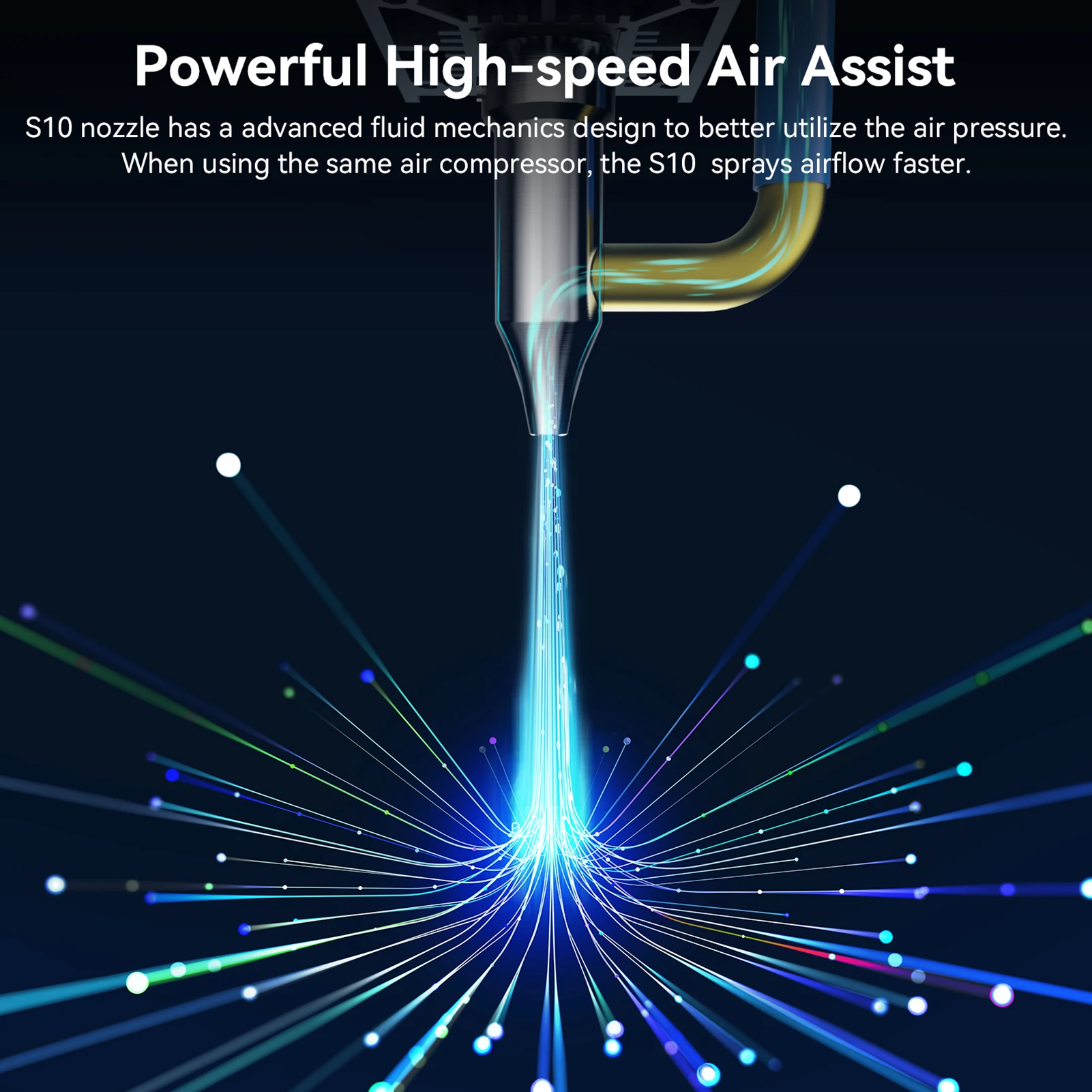 Усовершенствованный лазер S10's air-assist и high poewr может ускорить процесс сжигания и изменения остатка материала, значительно улучшить производительность резки и сделать лазерную резку более быстрой и чистой