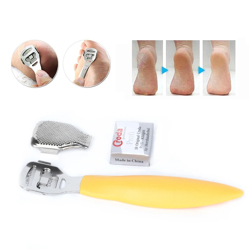 Foot care cleaning stainless steel foot peeler kit Heel Cuticle Remover Pedicure Razor Foot Scraper 10 Blades Set New Foot Care