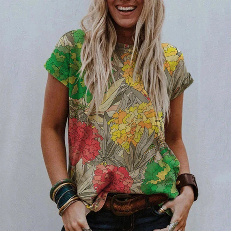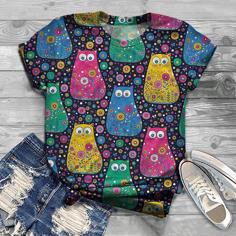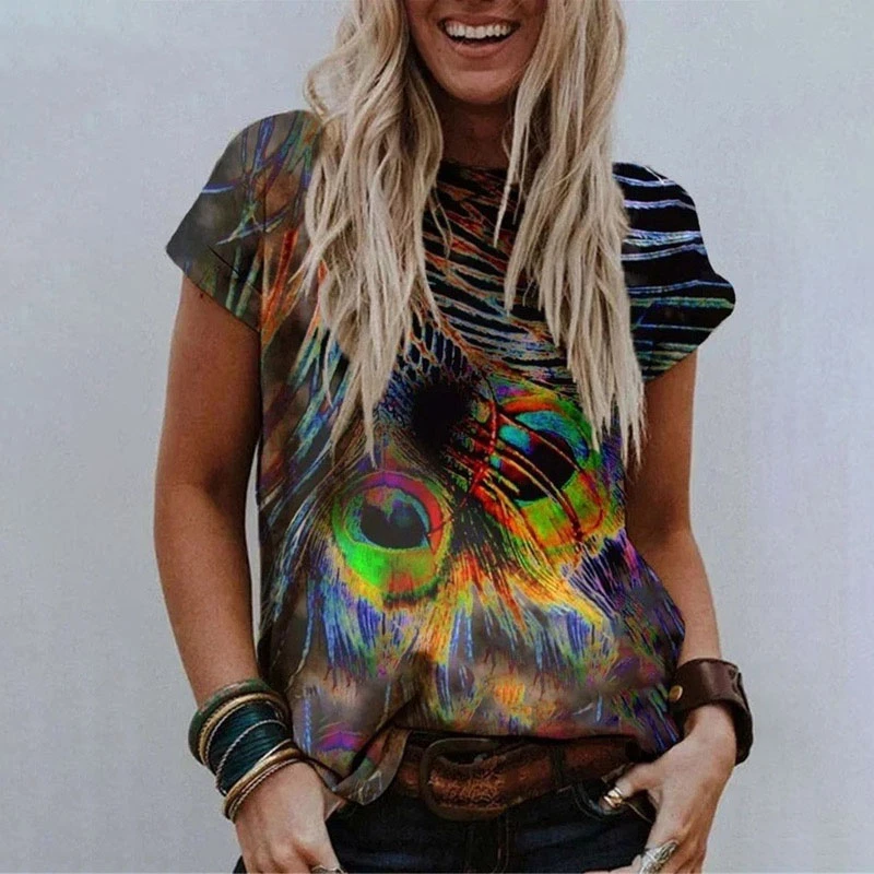 ❤Особенности:Короткий рукав,Круглый вырез, 3D цифровая печать, модный стиль.