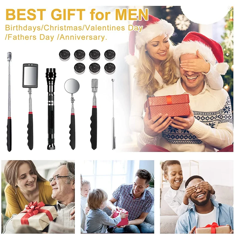 Набор инструментов для магнитного пикапа (набор из 5): 1 Выдвижной гибкий Выдвижной мини-фонарик, 1 зеркало для круглого осмотра, 1 зеркало для квадратного осмотра, 1 8 фунтов магнитный стержень и 1 1,5 фунтов магнитный стержень.