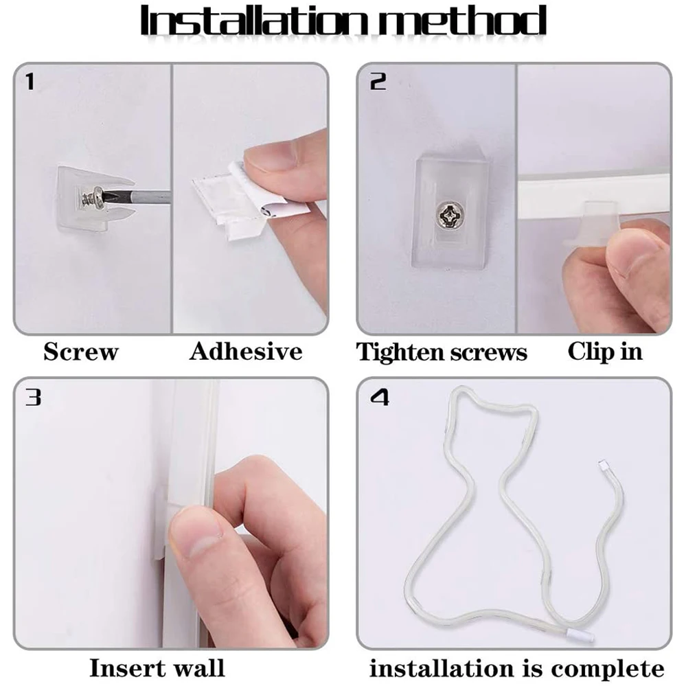 * На задней стороне неонового знака нет клея. Каждый метр поставляется с 1 зажимом для ПК. Если вам нужно больше зажимов для фиксации, пожалуйста, свяжитесь с нами для дополнительных покупок.