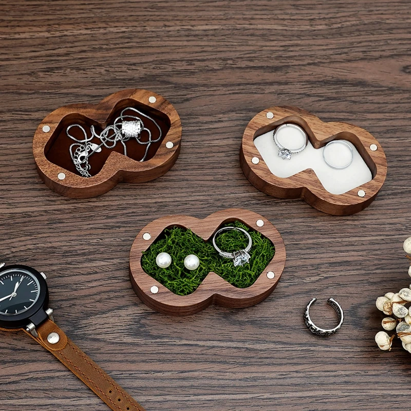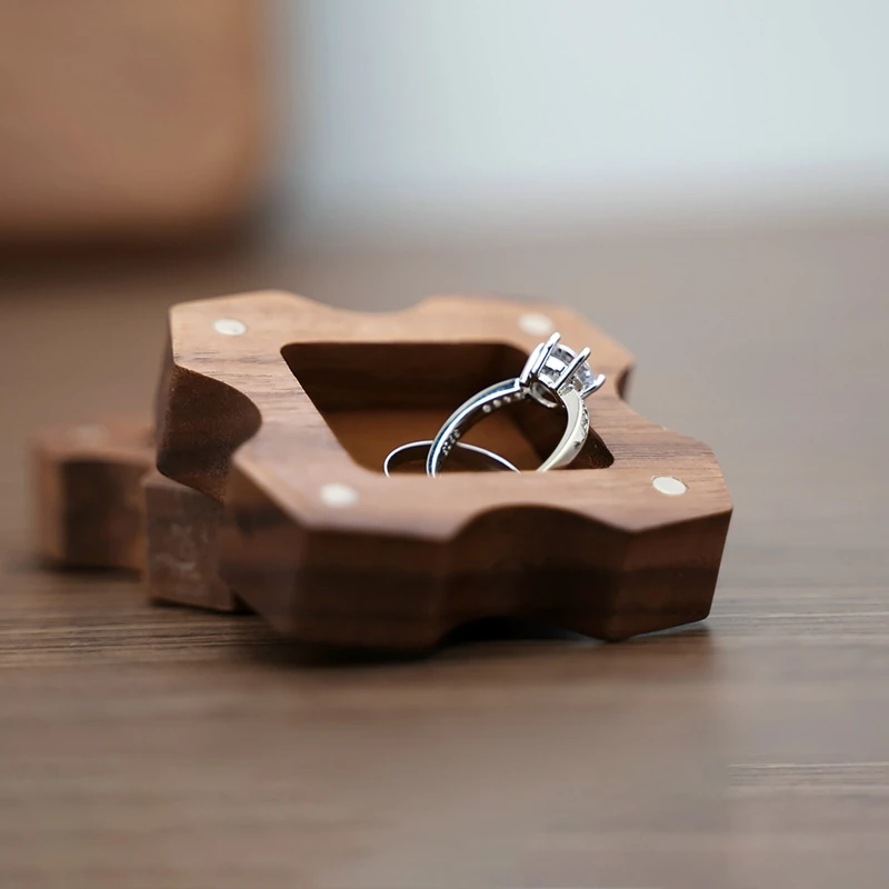 Этот вид деревянной коробки может быть использован не только как предложение кольцо, обещающее кольцо, обручальное кольцо коробка для особых случаев, но также может быть использован как маленькая коробка ювелирных изделий, чтобы держать ваши серьги гвоздики, кольца и запонки для ежедневного использования.