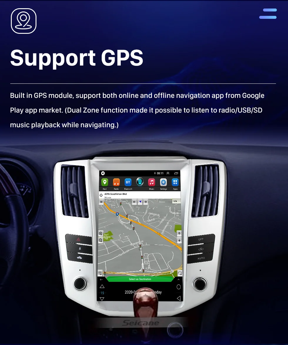 Seicane Android 10.0 Car Radio 12.1 inch HD Touchscreen Multimedia Player for 2004-2008 Lexus RX330 RX300 RX350 RX400 GPS Navi