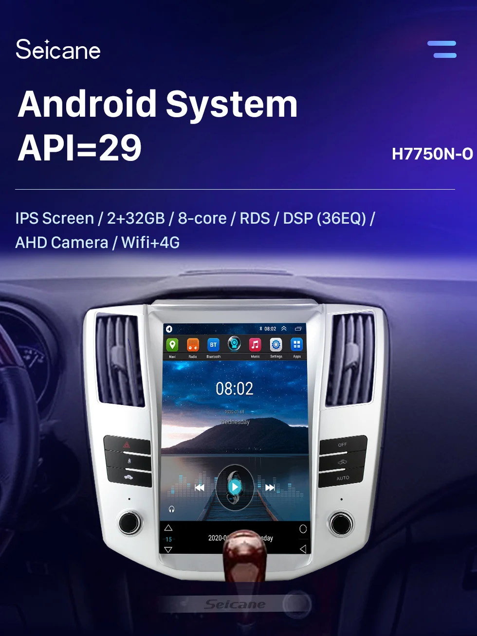 Model NameH7750Brand NameseicaneOriginMainland ChinaCertificationCEOperating SystemAndroid 10.0 OSVoltage12VDisplay Size12"InterfaceUSBMaterial TypePlasticItem Weight2.2Special FeaturesRadio TunerSpecial FeaturesBuilt-in GPSSpecial FeaturesTVSpecial FeaturesFM TransmitterSpecial FeaturesMP3 PlayersSpecial FeaturesChargerSpecial FeaturesMobile PhoneSpecial FeaturesTouch ScreenSpecial FeaturesbluetoothOSD LanguageJapaneseOSD LanguageGermanOSD LanguageKoreanOSD LanguageIndonesiaOSD LanguageEnglishOSD LanguageRussianOSD LanguageNorwegianOSD LanguageSpanishOSD LanguageFinnishOSD LanguagePortugueseOSD LanguageFrenchOSD LanguageMalayOSD LanguageSpain's BasqueMax External Memory32GFor Vehicle Brands/ModelLexusOut Power4*45WItem Size351*317mmResolution1280*800Digital Media FormatWMADigital Media FormatMp3RAM2GROM32GSpecial FeatureSupport 3G NetworkSpecial FeatureWifi FunctionSpecial FeatureSupport Can-BusSpecial FeatureSupport Steering Wheel ControlSpecial FeatureBuilt-In Speaker/MicrophoneTF/Micro SD Slot0DinDouble DinMeasurement unitpiece/piecesEach pack1Suitable Vehicle Typefor 2004-2008 Lexus RX330 RX300 RX350 RX400Item TypeCar Radio Multimedia Player GPSOperation systemAndroid 10.0 API 29Feature 1Android 10.0Feature 2Support 360° cameraFeature 3Carplay