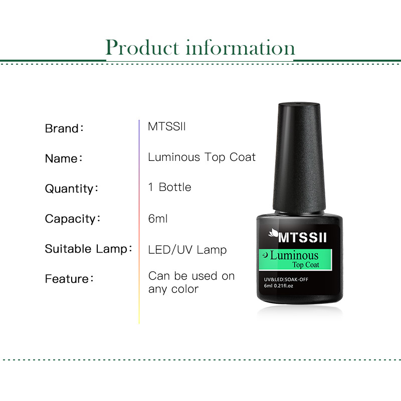 Подходит для нанесения поверх УФ-гелевых ногтей, акриловых ногтей, натуральных ногтей и т. д. и позволяет создать глянцевое покрытие.