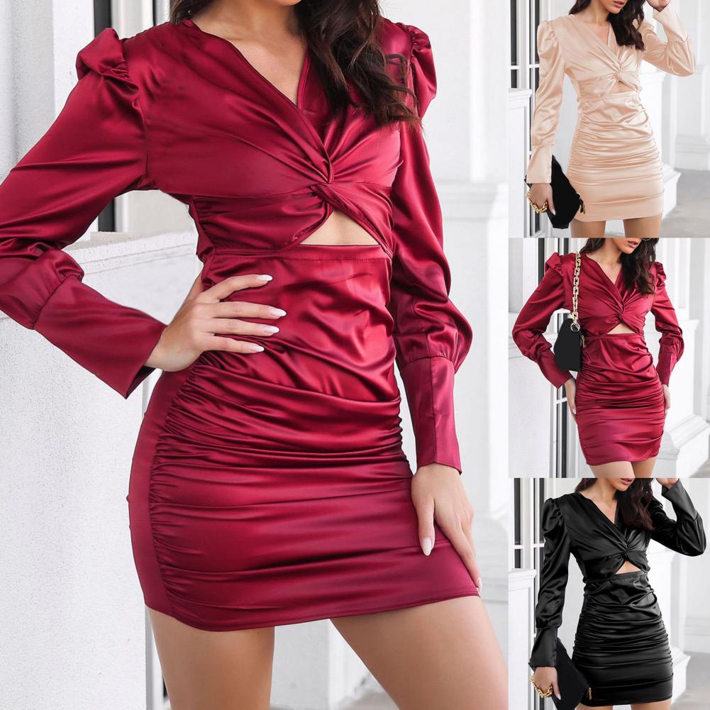 Уникальный мини платье пикантные однотонные Цвет платье тонкие красивые вечерние Клубное платье