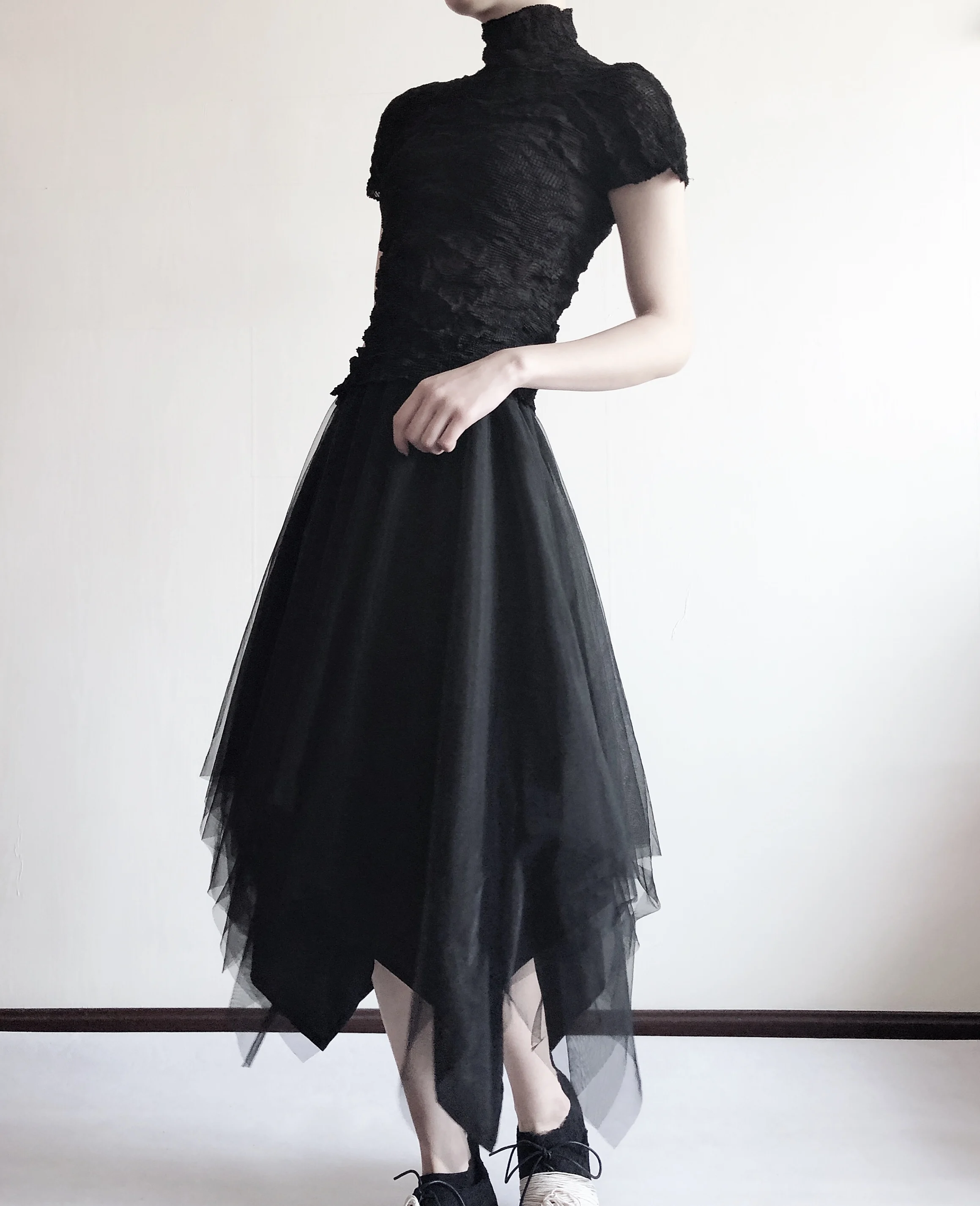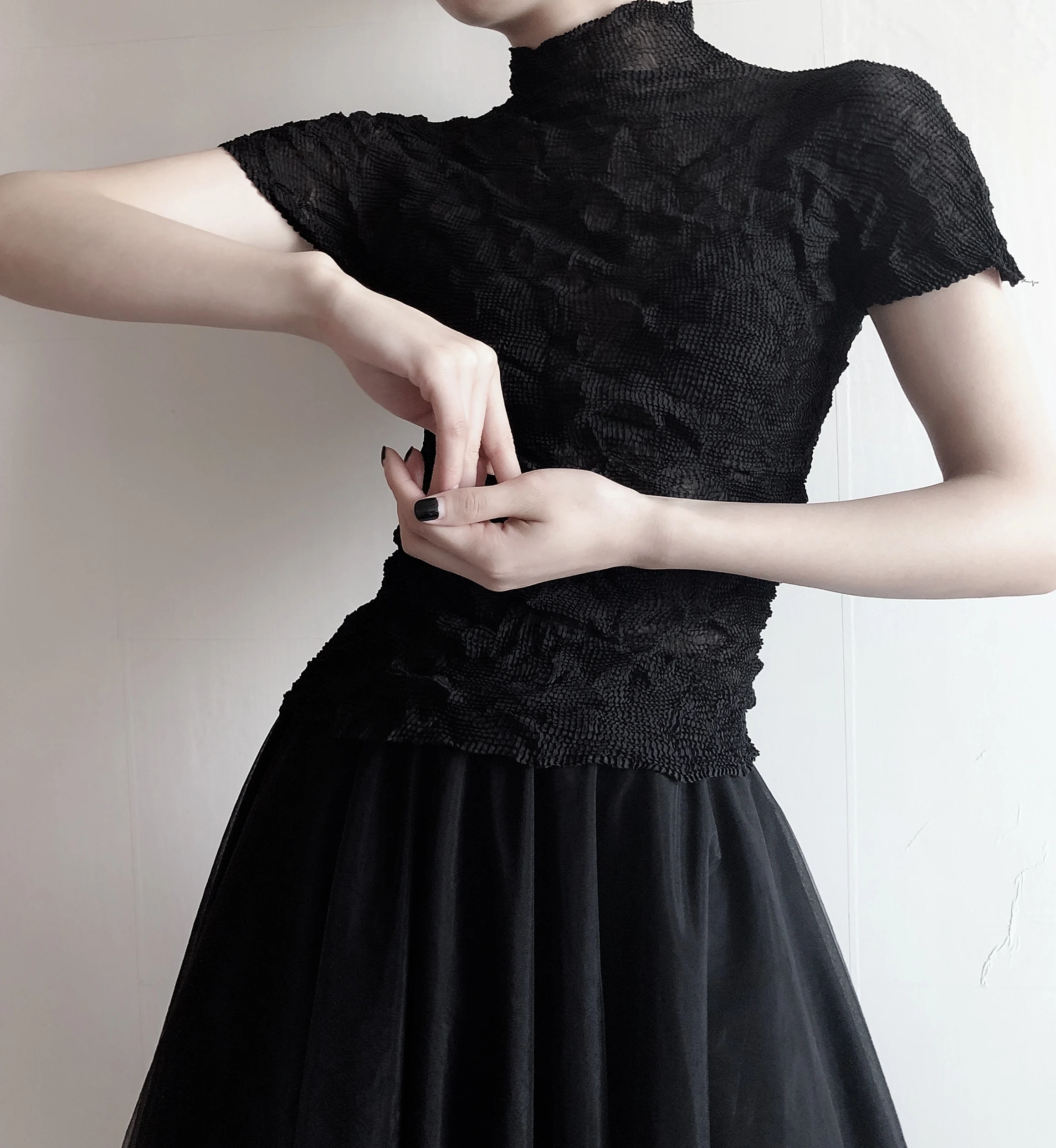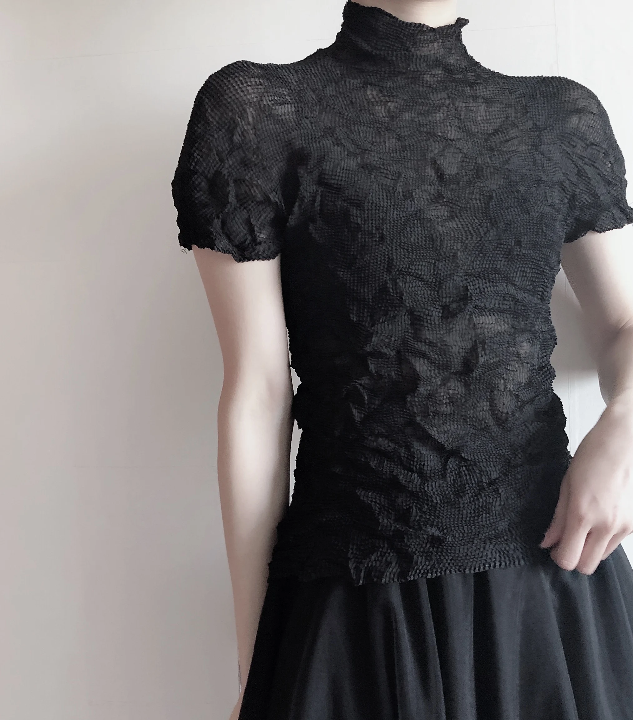 Летняя плиссированная футболка с коротким рукавом и полупрозрачной текстурой Y2K