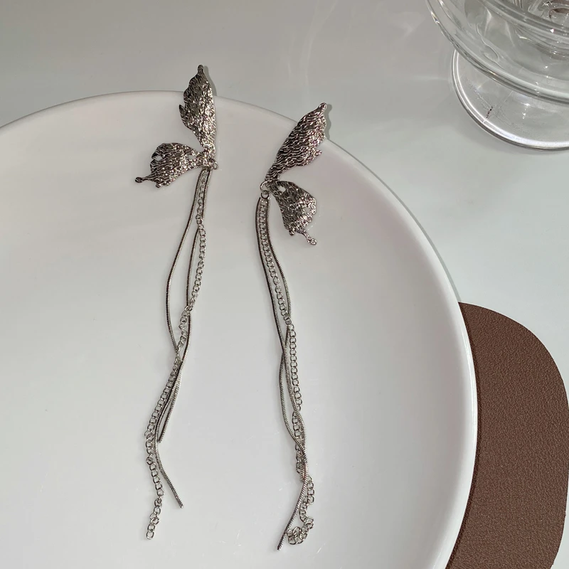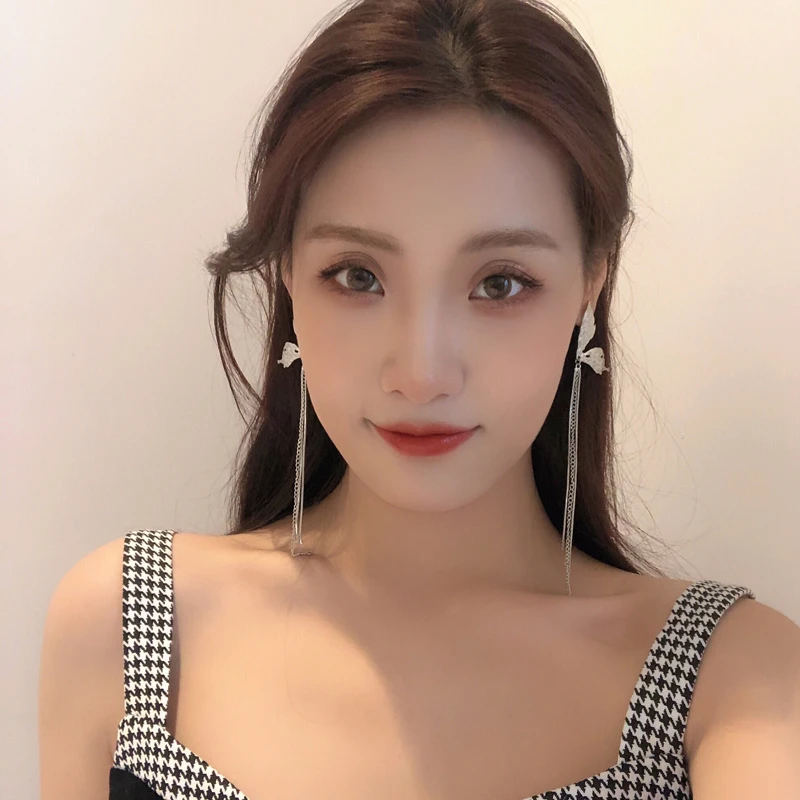 Женские длинные серьги-подвески LATS большие стразы в форме двух сердец украшения