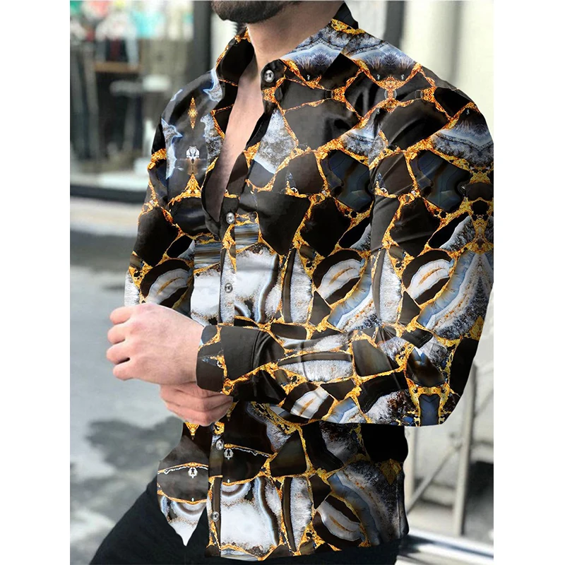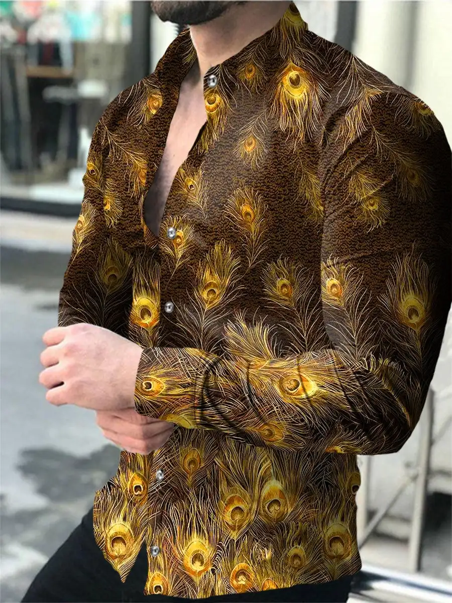 Рубашка мужская хлопково-льняная с воротником-стойкой повседневная брендовая