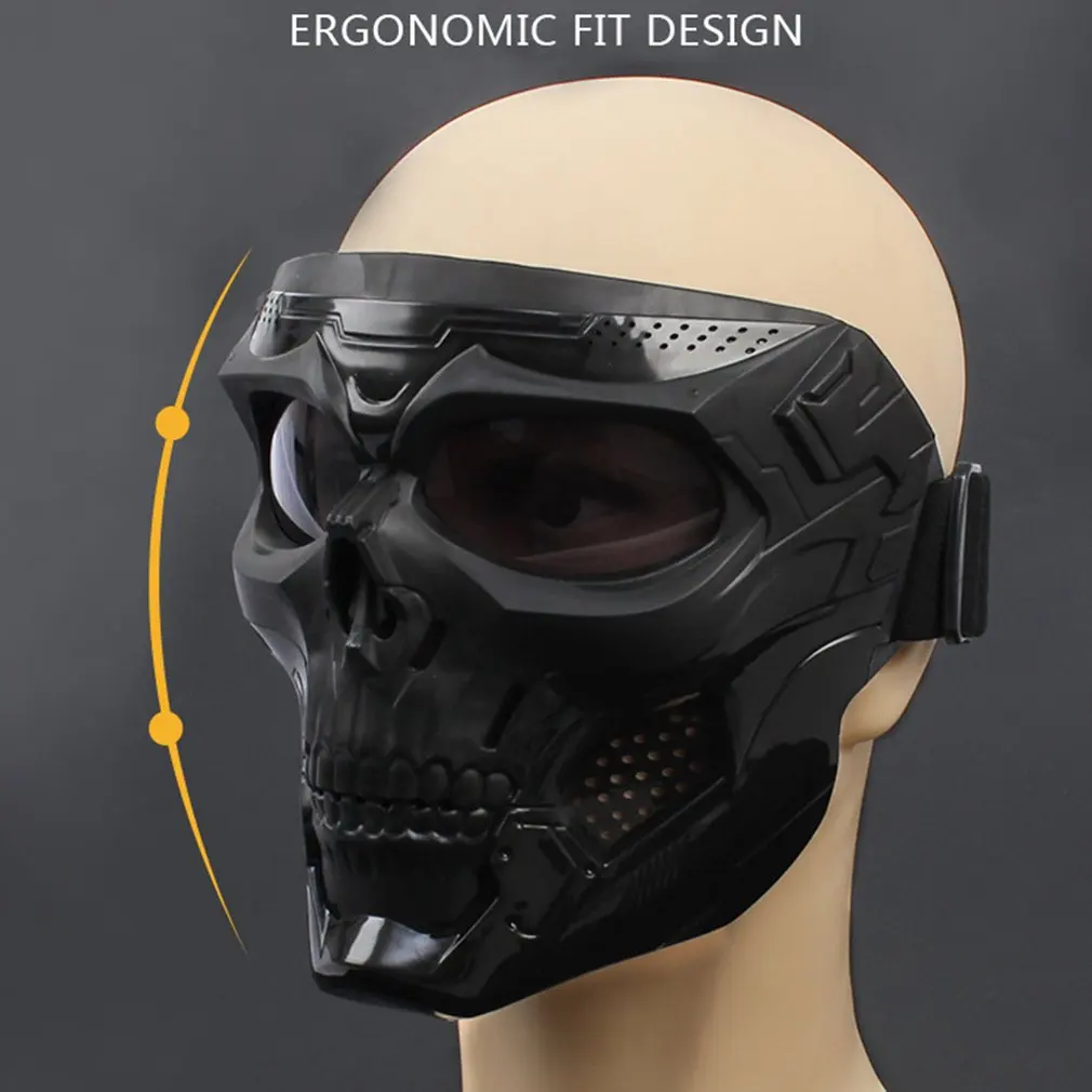 1. Маска с черепом обеспечивает комплексную защиту воздушного оружия и других видов спорта на открытом воздухе. Защитите свое лицо. Прозрачные очки могут быть внутри шлема и могут переключаться по желанию.