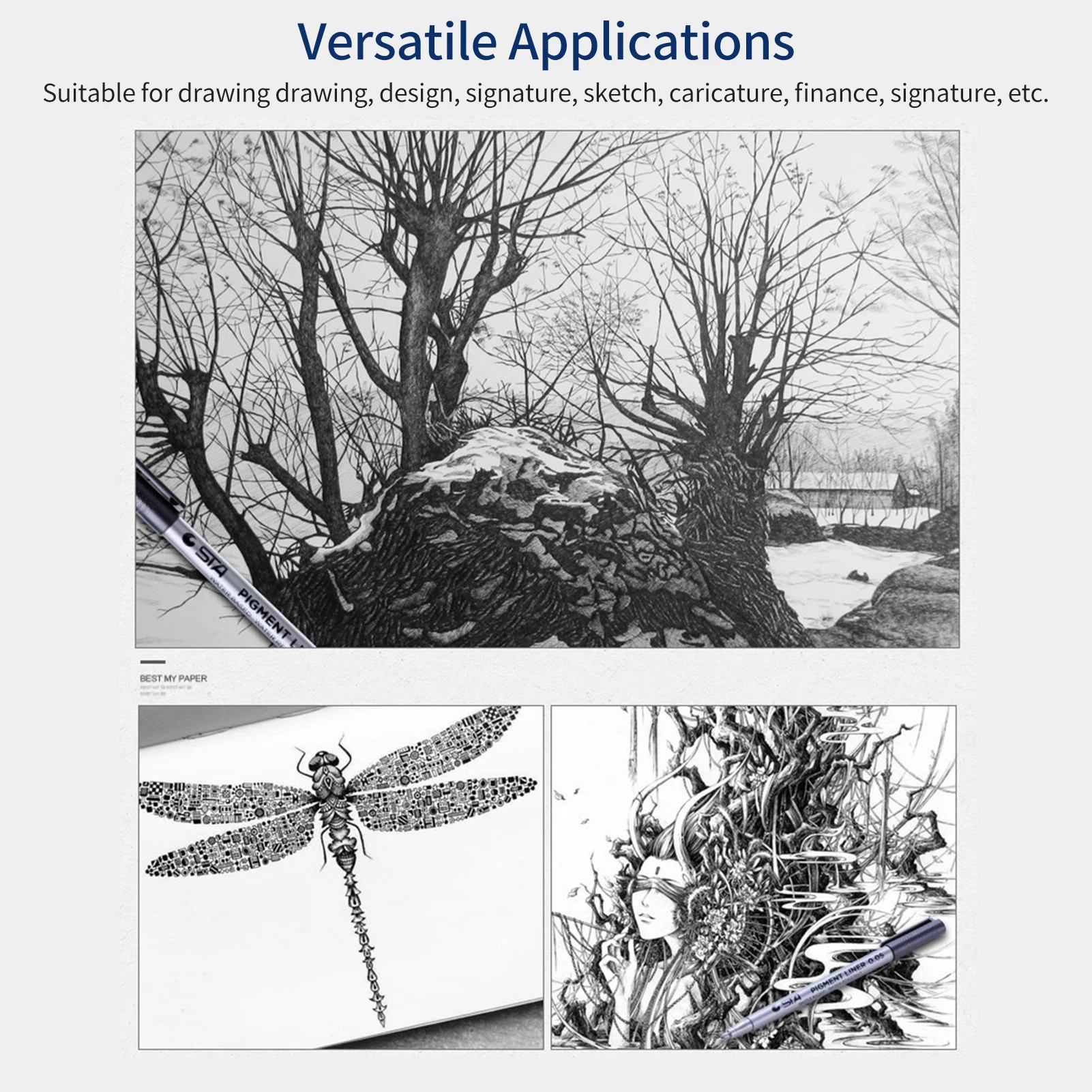 9 перо размеров, ручки для рисования, включая 0,05 мм, 0,1 мм, 0,2 мм, 0,3 мм, 0,4 мм, 0,5 мм, 0,6 мм, 0,8 мм, BR (мягкой щеточки, чтобы придать). Предлагая разные размеры для ваших нужд, этот набор ручек тонкой линии с точной шириной линии идеально подходит для рисования и письма, хранения и точной работы.