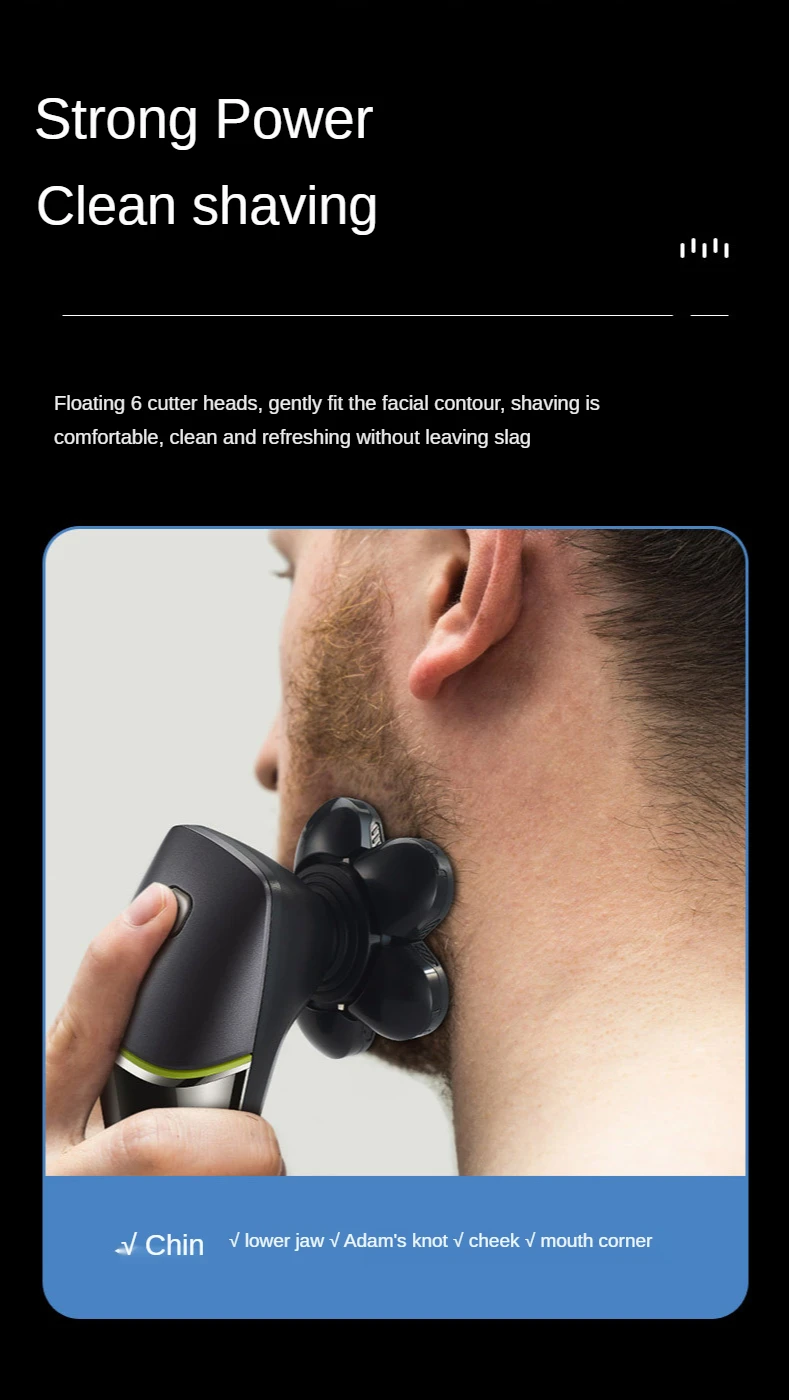6 в 1 Мужская перезаряжаемая Бритва для электробритва, 6 плавающих головок, борода, носа, ушей, триммер для волос, бритва, машинка для стрижки лица
