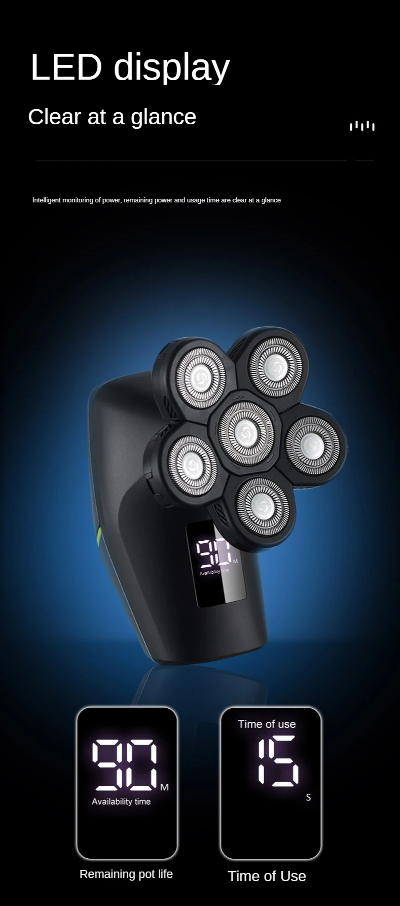 * Шесть независимо плавающих головок, интеллектуальное бритье.