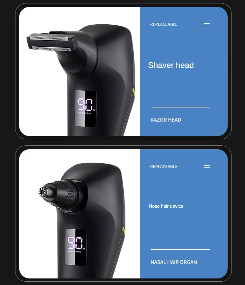 * 6 в 1 комплекте, кроме головки бритвы, есть Точная Головка триммера, Головка триммера для носа и ушей, мягкая губка для лица и щетка для очистки лица.