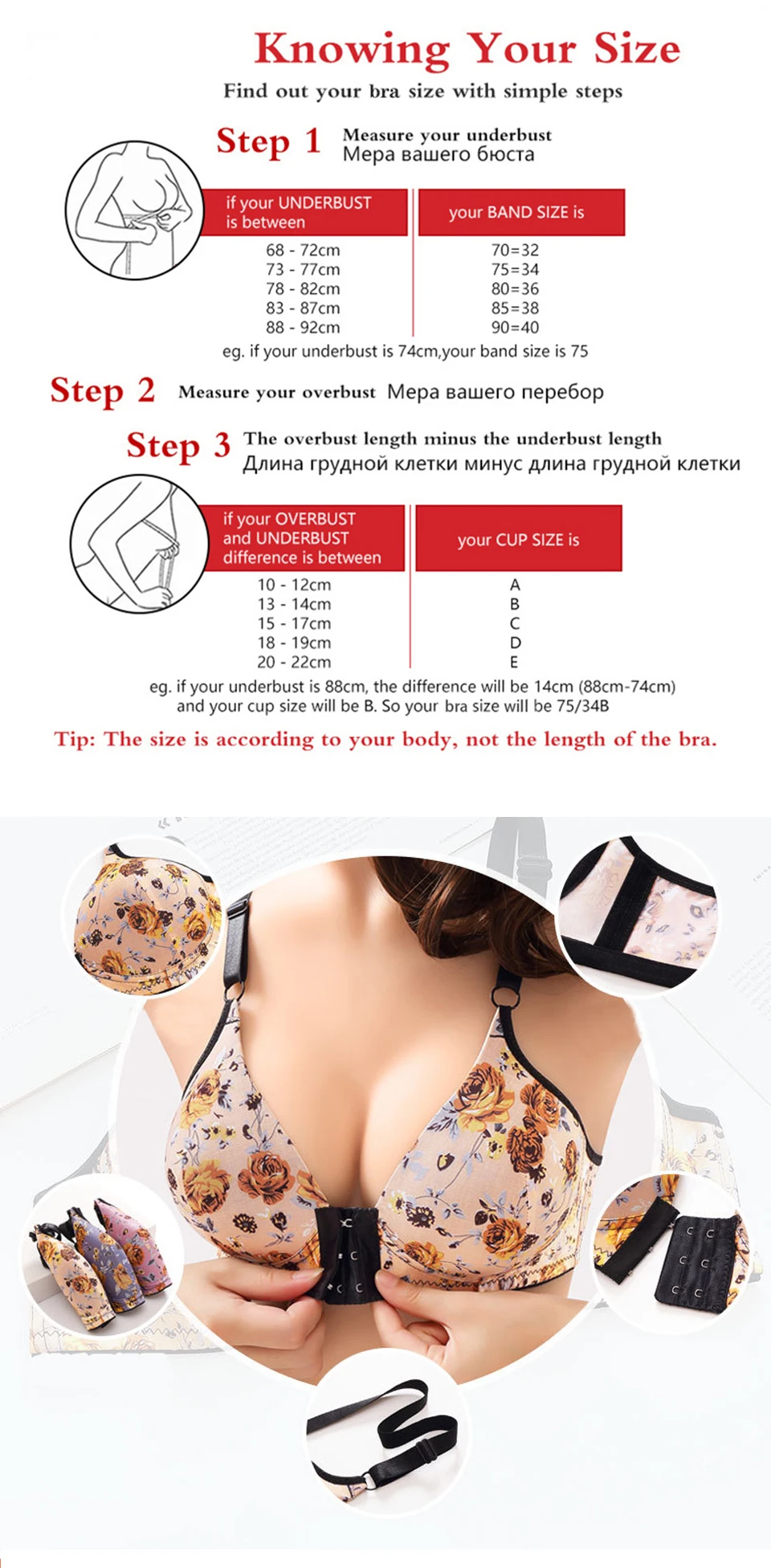2: Размер На бирке-это Азиатский Размер, Азиатский размер меньше, чем размер ЕС/США/Великобритании; Пожалуйста, проверьте подробную информацию о размере перед покупкой. Обычно мы рекомендуем брать на один размер больше вашего обычного размера. Как 36B, пожалуйста, возьмите 38B.