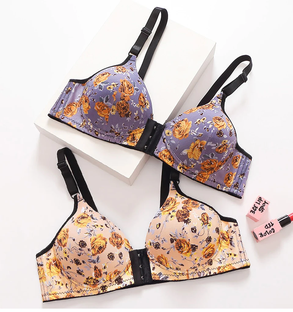 Folomi, бюстгальтер с застежкой спереди, беспроводное женское нижнее белье, с принтом, пуш-ап, нижнее белье, чашка B C