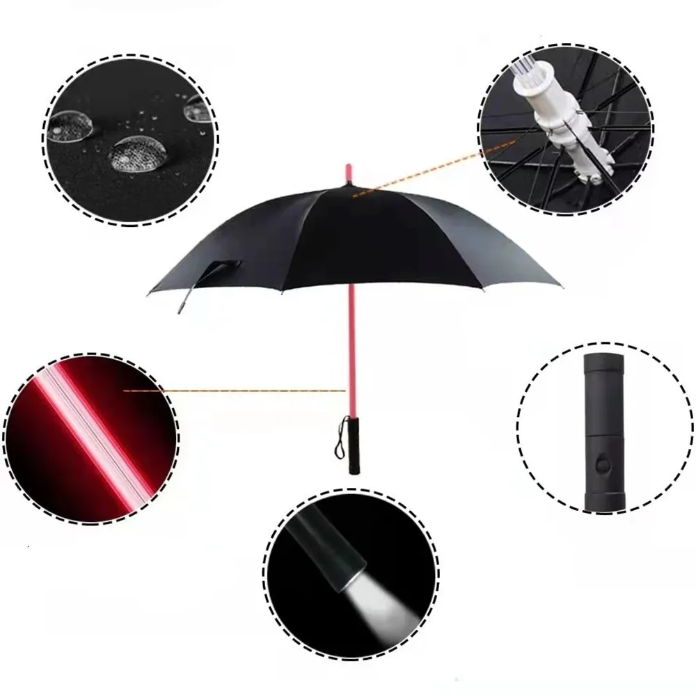 Пластиковый красный походный дождь прозрачный СВЕТОДИОДНЫЙ зонт для мужчин и женщин, мигающий Ночной светильник, держатель, роликовые водонепроницаемые ветрозащитные Зонты