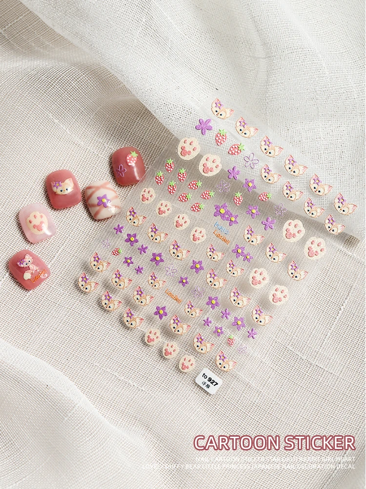 Дизайн ногтей милые животные лиса кролик Цветочная подошва 3D Выгравированные наклейки самоклеющиеся слайдеры обертывания Украшение для маникюра