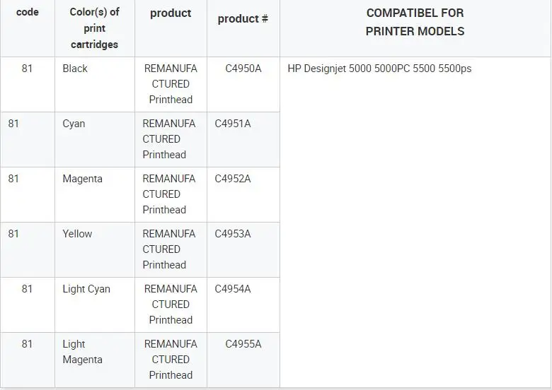 Восстановленная печатающая головка PHR81 для HP 81 Designjet 5000PC 5500 5500ps C4950A C4951A C4952A C4953A C4954A C4955A