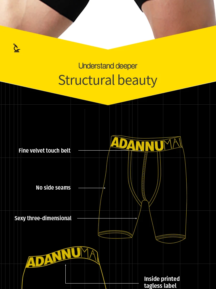 Новое мужское нижнее белье, Длинные боксеры, мужские сексуальные мужские трусы-боксеры, хлопковые удобные u-образные трусы Cuecas, мужские трусы AD7124