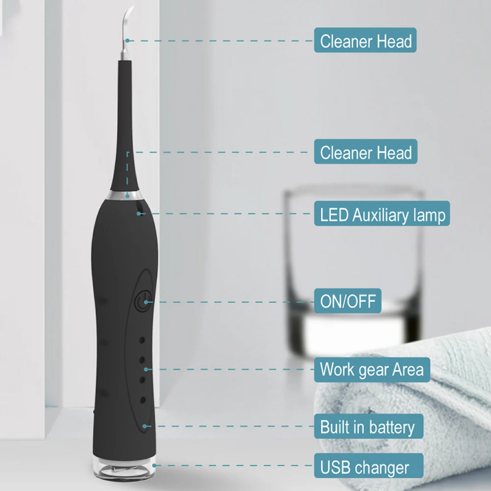 Вибрационная мощность 40 кГц, глубокое очищение зубов, не повреждая зубную эмаль, делает ваши зубы красивыми и яркими