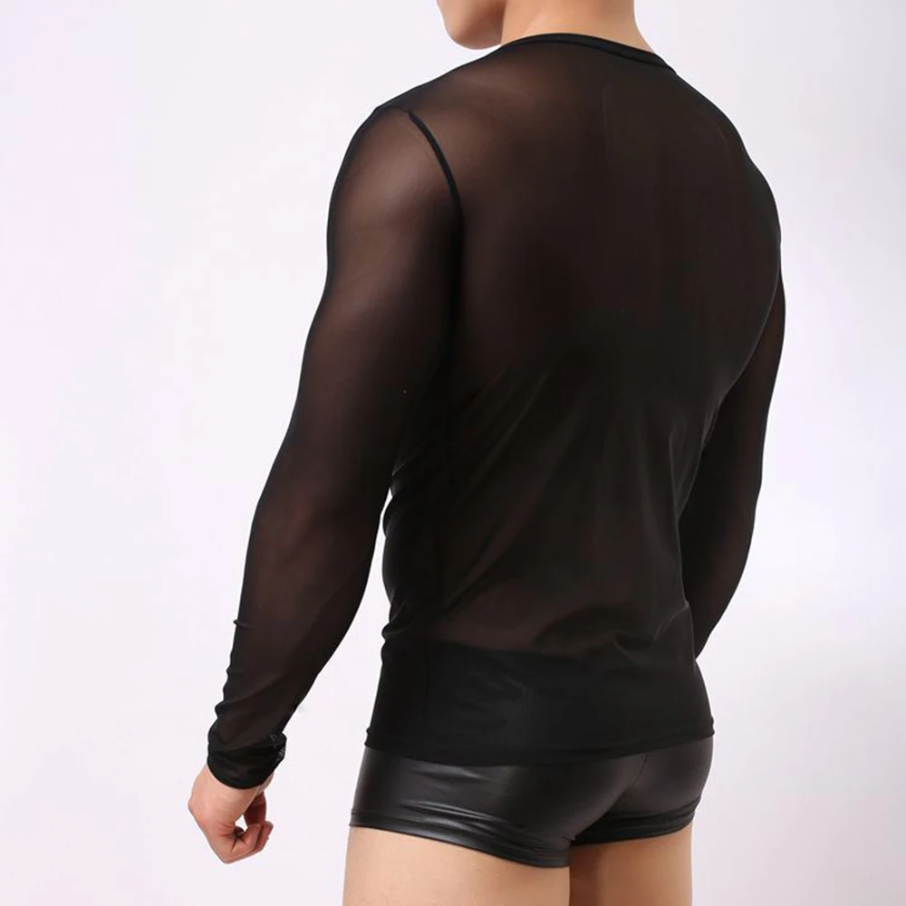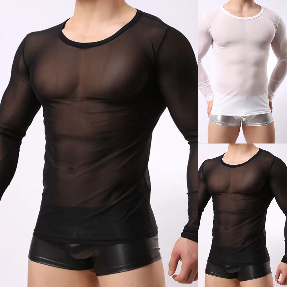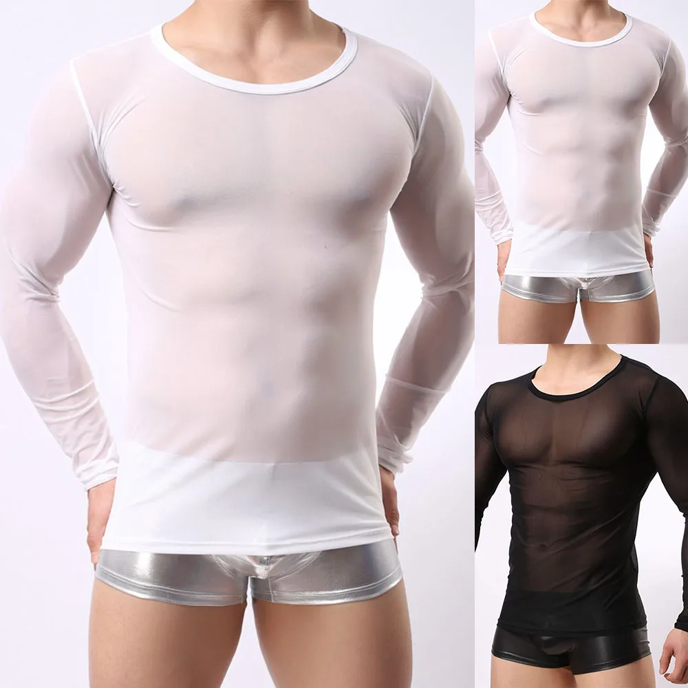 * Описание товара:Для мужчин'SСексуальныйТонкийРастягиваетсяY длинный рукавСмотреть сквозьТрикоКруглый вырез SHapingТопы