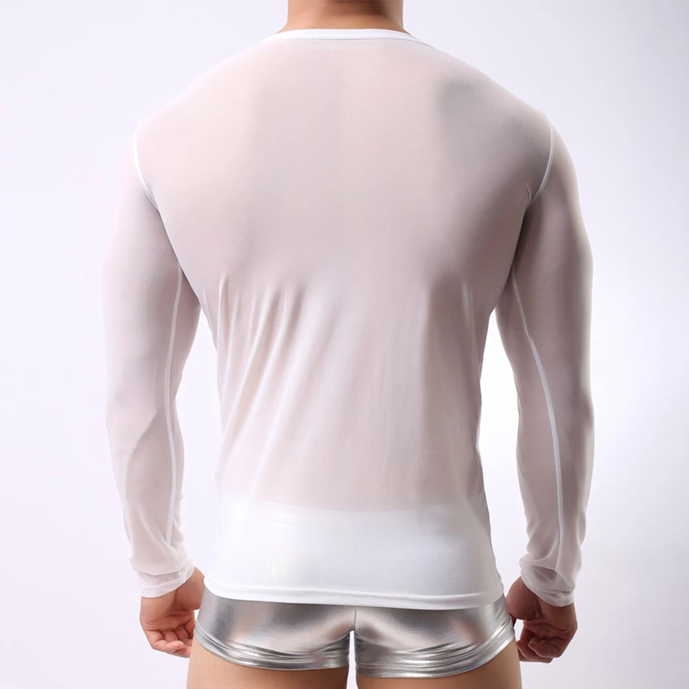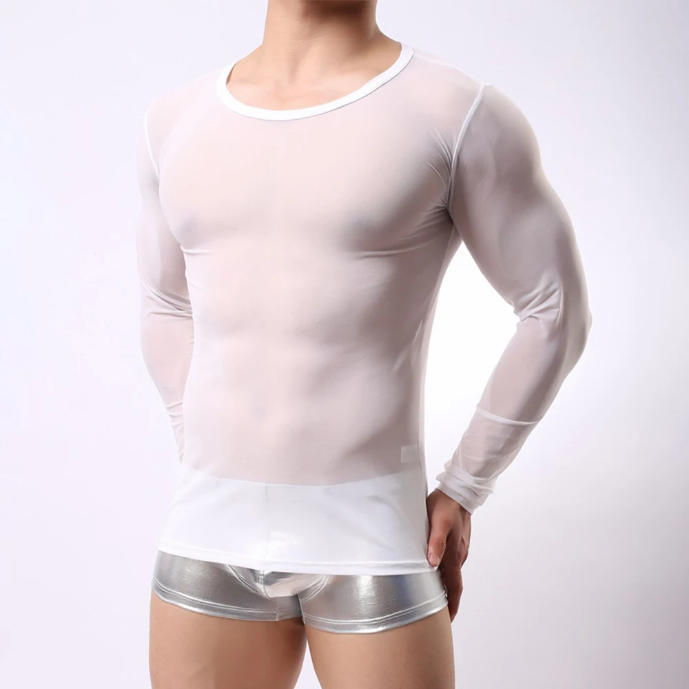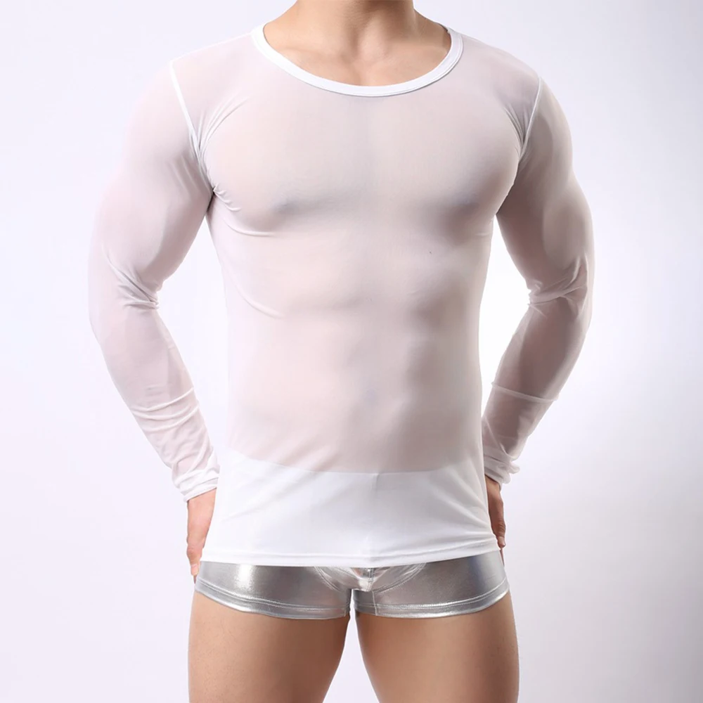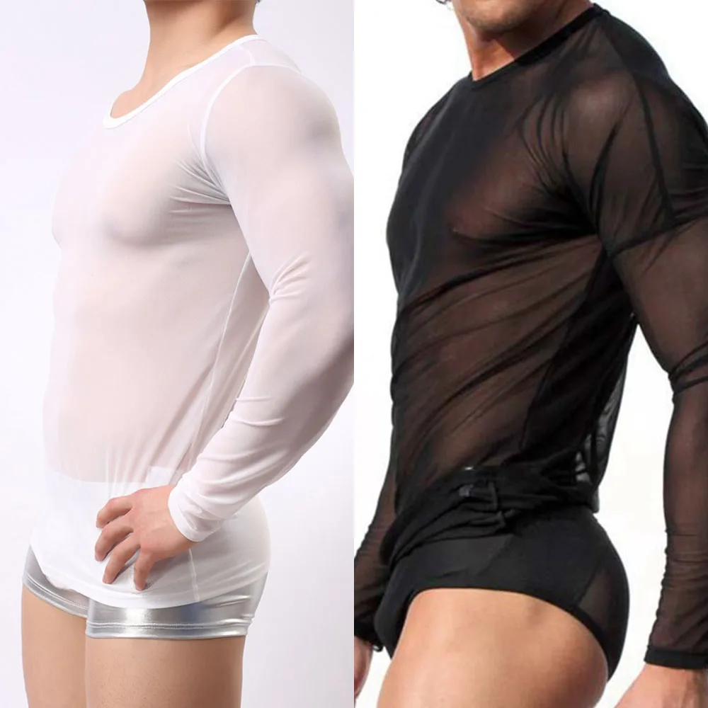 * Описание товара:Для мужчин'SСексуальныйТонкийРастягиваетсяY длинный рукавСмотреть сквозьТрикоКруглый вырез SHapingТопы