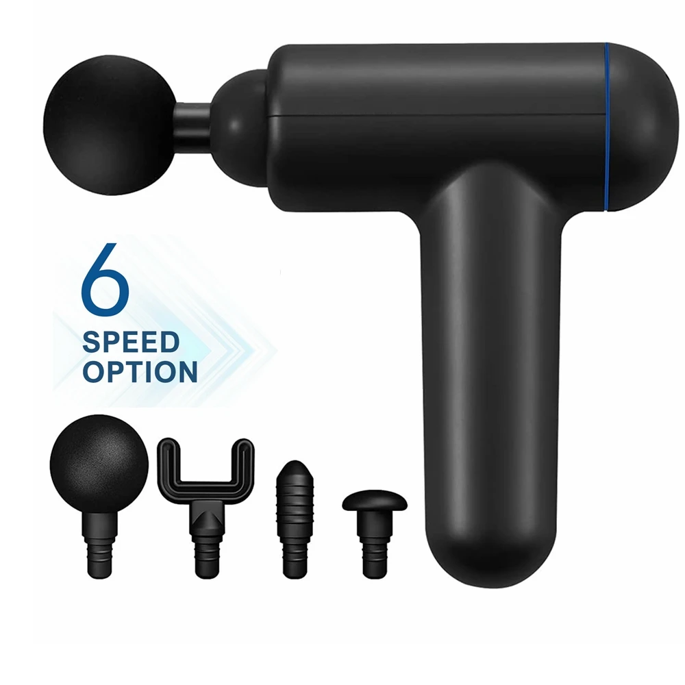 【 6 Регулируемых скоростей + 4 сменных массажных головки 】: многочастотная вибрационная Конструкция ударного массажного пистолета, запуск одной кнопкой, 6 Регулируемых скоростей для удовлетворения потребностей всех мышц релаксации, 4 массажных головки для различных частей тела, вы можете регулировать интенсивность в зависимости от различных частей тела и различных видов использования, и изменить потребности массажной головки