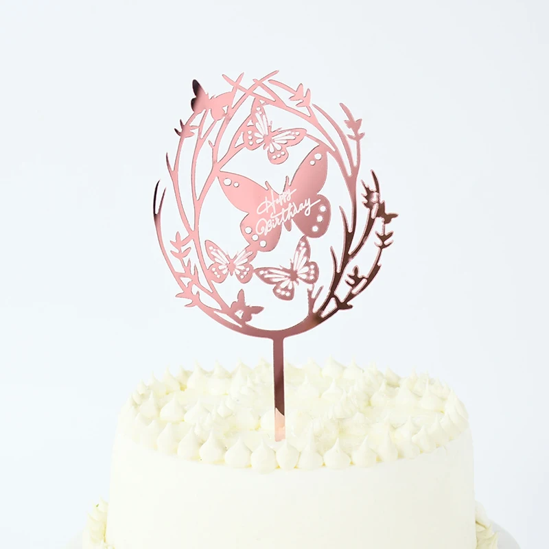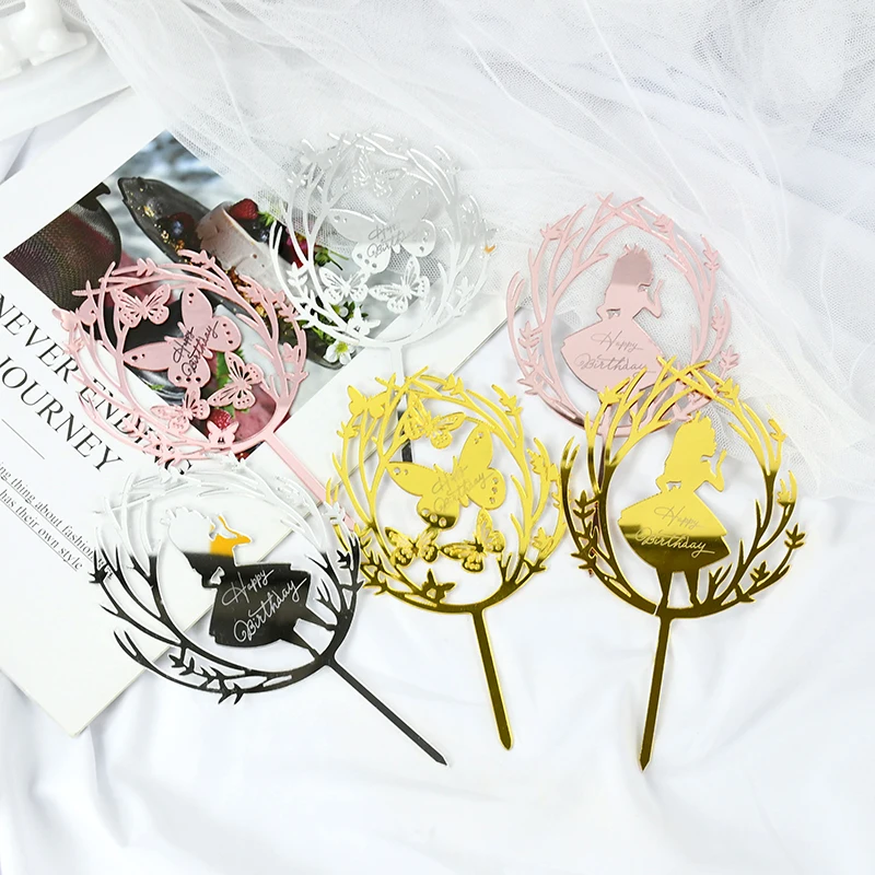Бабочка Принцесса Форма торт Toppers акрил розовое золото серебро Топпер для торта «С Днем Рождения» для детей день рождения вечерние