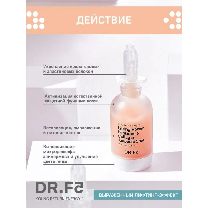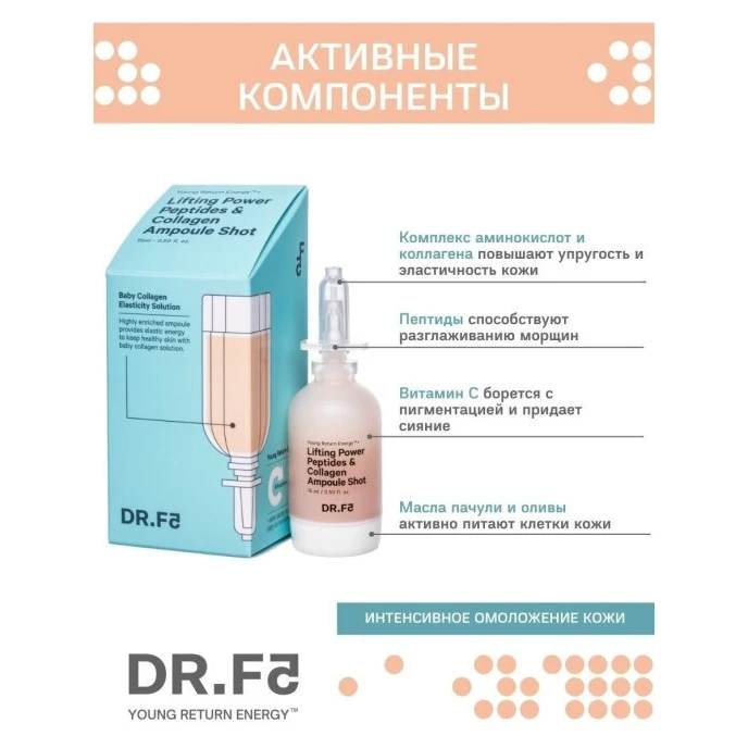 Аннотация | Dr.F5 предлагает вам набор из Лифтинг ампулы-шот с пептидами и коллагеном и Экстра увлажняющая маска с гиалуроном. Аминокислоты и пептиды ампулы-шот борятся с возрастными изменениями, возвращая коже гладкость и эластичность. Активизирует естественную защитную функцию дермы, регенерирует и защищает. Концентрированная формула направлена на моментальное подтягивающее, питающее и смягчающее действие. А маска с гиалуроном притягивает и удерживает молекулы воды, тем самым обеспечивая упругость каркаса кожи и укрепляя его. Экстракты центеллы, камелии и граната борятся со свободными радикалами, защищая от возрастных изменений. |