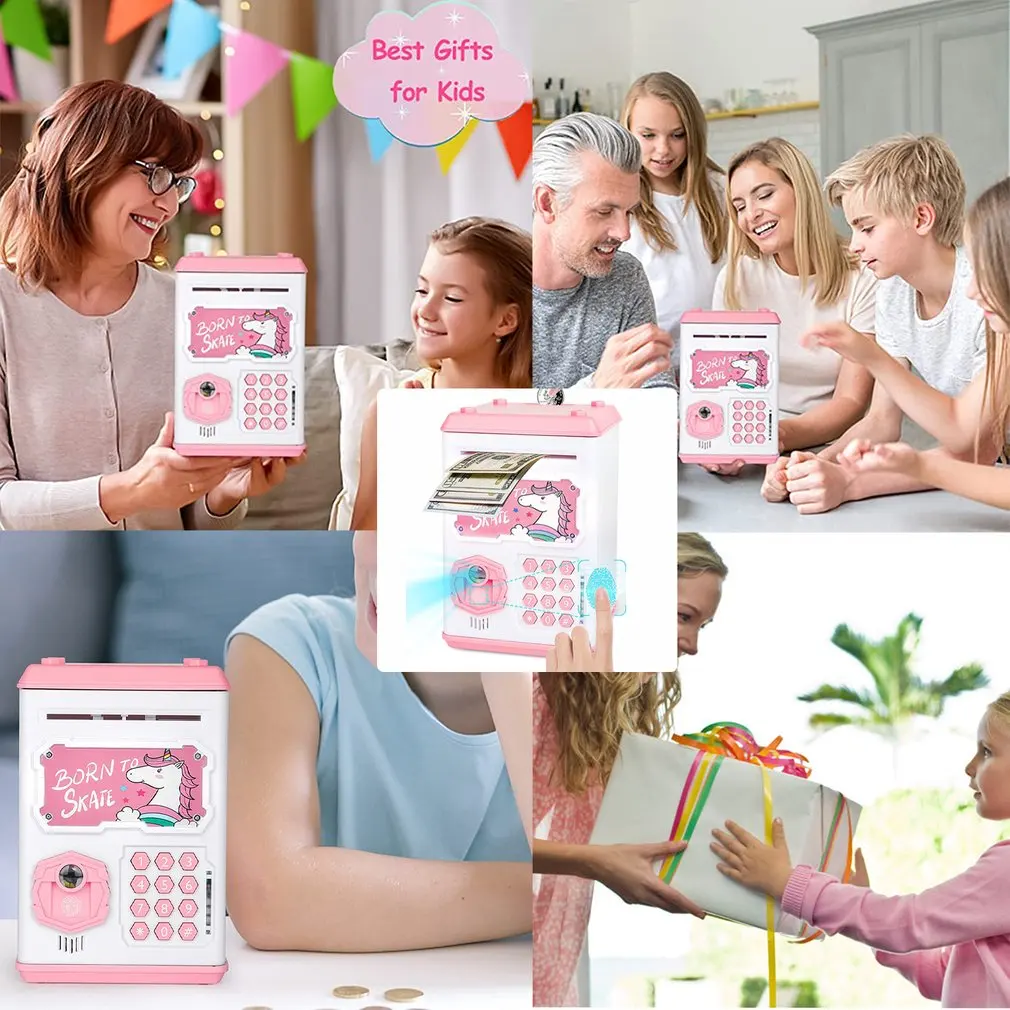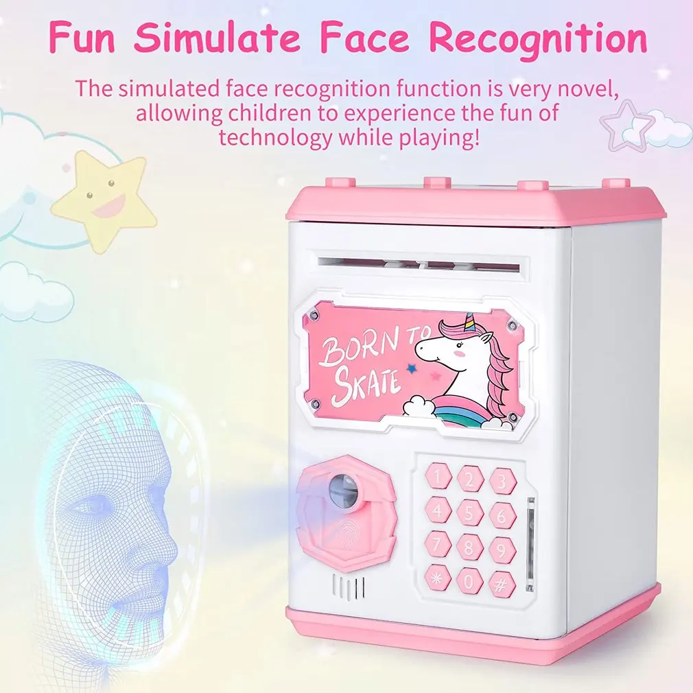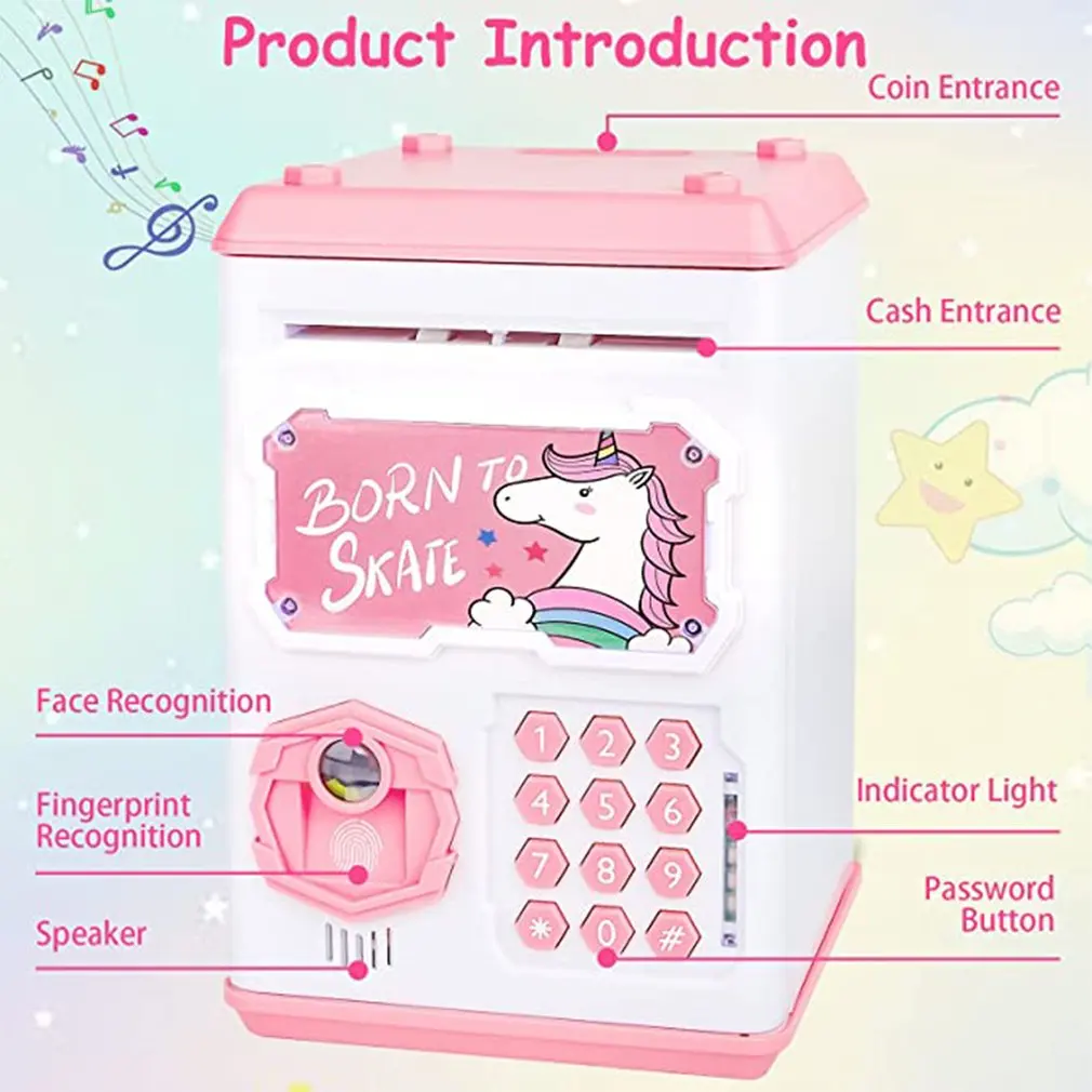 Brand NameNoneModel NumberPiggy BankOriginMainland ChinaMaterialPlasticShapeRectangleMeasurement unitpiece/piecesEach pack1Typemoney-saving box1 044,56 ₽-30%1 044,56 ₽-30%731,28 ₽731,28 ₽there are seller's couponsloader 4,0 All stars Ships From: China El producto ha llegado roto, una decepción para mi niña. Ships From: China Не совсем соответствует картинкам по размеру, довольно маленькая. Ну и вся поцарапаная. Ships From: China Features: 1. Unicorn gift ideas: Unicorn piggy bank is very fashionable and unique, whether it is a Christmas birthday gift for girls, babies and boys. Definitely a highlight for birthday parties or Christmas decorations, especially for unicorn lovers. 2. Simulated fingerprint and face recognition: The initial default password is 0000. After the password is entered successfully, the green light will be on for simulated face recognition, and the warehouse door will open automatically. The face fingerprint recognition function of coin bank is very novel, allowing children to experience the fun of simulation and technology while playing. 3. Large-capacity money-saving box: This piggy bank can store a large amount of coins or banknotes. Let children save pockets money in a planned way, which greatly helps children develop a good habit of saving money. Really good financial helper for children. 4. Automatic paper roll: insert the banknote into the slot on the top of the automatic teller machine for children, and then it can be easily rolled into the automatic teller machine. Easy to use by children. (But if that paper is too old or too smooth, it will not work.) 5. High-quality coin-operated piggy bank: The piggy bank is made of ABS plastic, which is safe and environmentally friendly, does not contain BPA, is tasteless and durable, and children can play with confidence. Even if it falls many times and is very strong, you will not be disappointed. Description: Environmentally friendly ABS plastic, safe, odorless, sturdy simulation design, not easy to break. Children will enjoy receiving this savings bank. It is fun and educational, and teaches them the importance of saving. Specifications: Material: ABS Size: 12.9*12.9*19.6cm Power supply: battery (not included) Function: nursery rhyme world/English enlightenment/money check/simulation fingerprint/simulation human insurance/cartoon modeling Package Included: 1pc* Piggy Bank (battery not included)Reviews