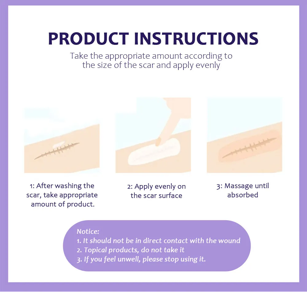 Возьмите соответствующее количество в соответствии с размером шрама и равномерно нанесите
