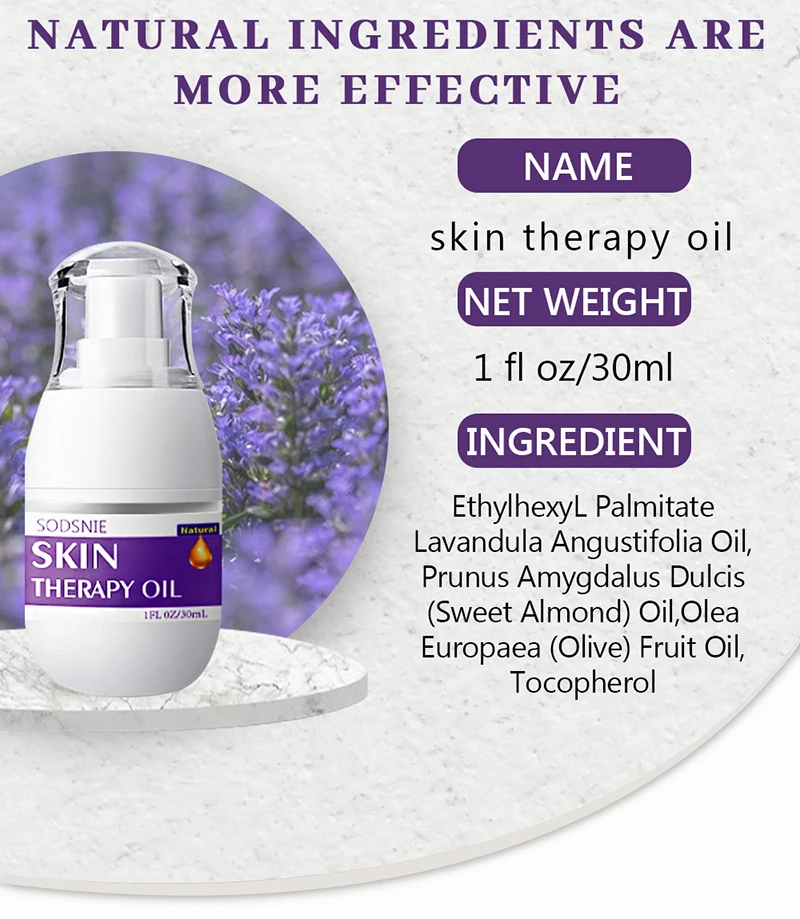 Особенности: Используйте масло для терапии кожи, чтобы улучшить тонус кожи, уменьшить или обратить вспять признаки старения, уменьшить появление рубцов и растяжек и многое другое.