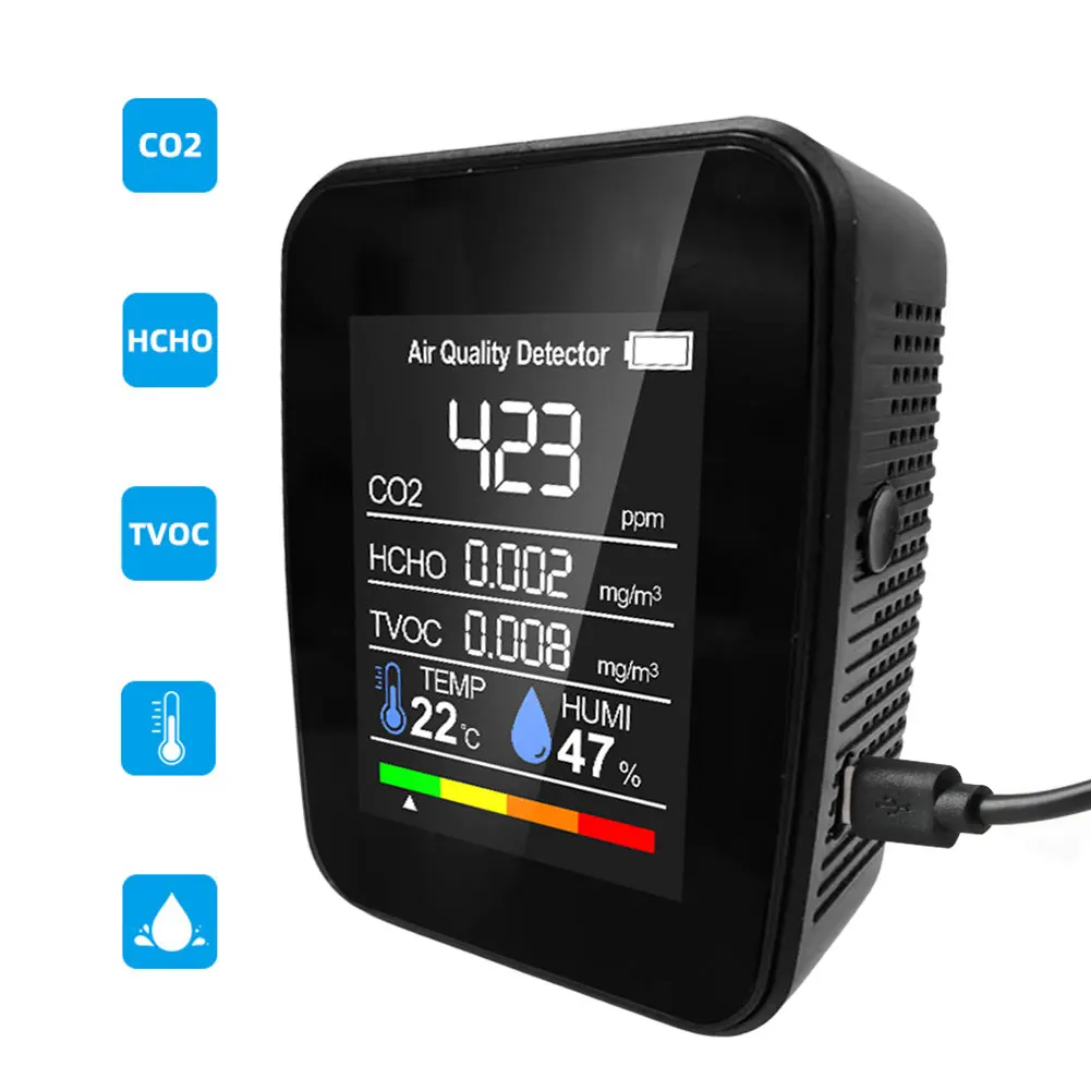 Комбинированный Монитор качества воздуха 5 в 1 измеряет газ более чувствительно, с быстрой скоростью обнаружения и быстрым изменением после воздушного потока. Он может не только измерять углекислый газ, но и обнаруживать раздражающие газы в воздухе