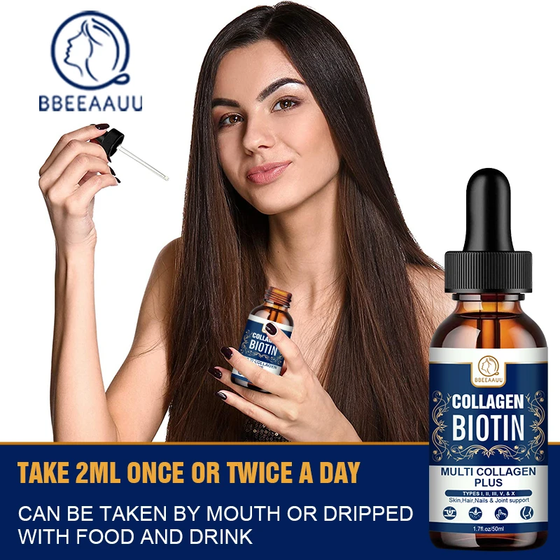 Bbeeaauu коллагеновые биотиновые капли увеличивают коллаген, укрепляет кожу, стимулирует рост волос, Уменьшает выпадение волос, восстанавливает здоровые волосы
