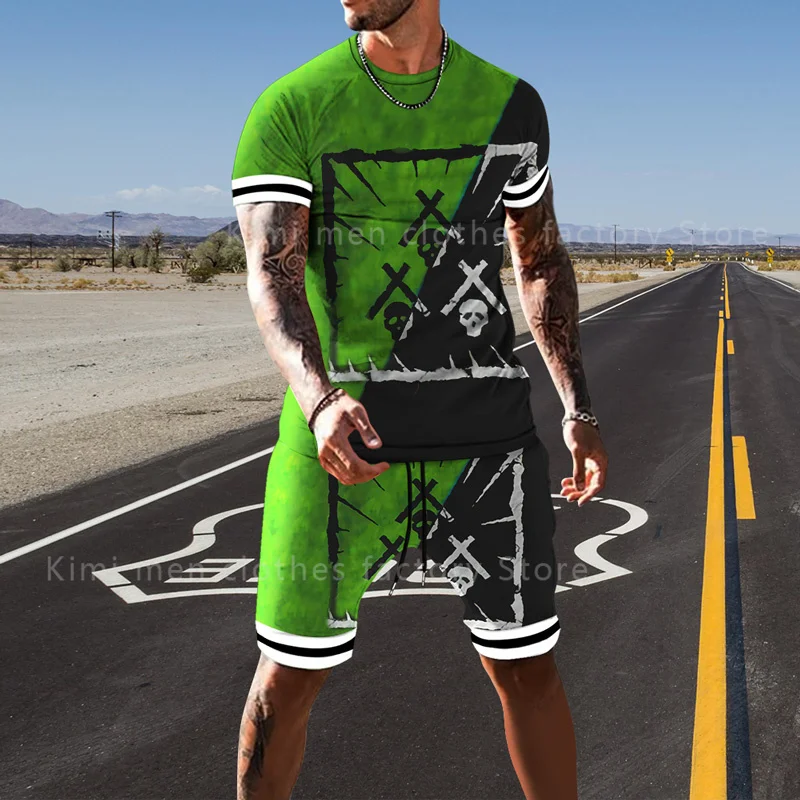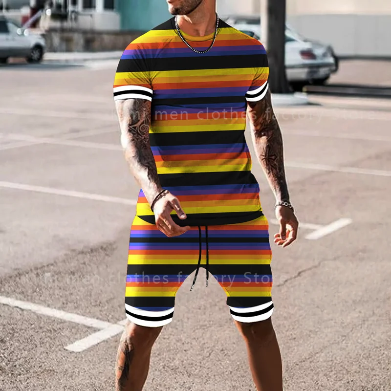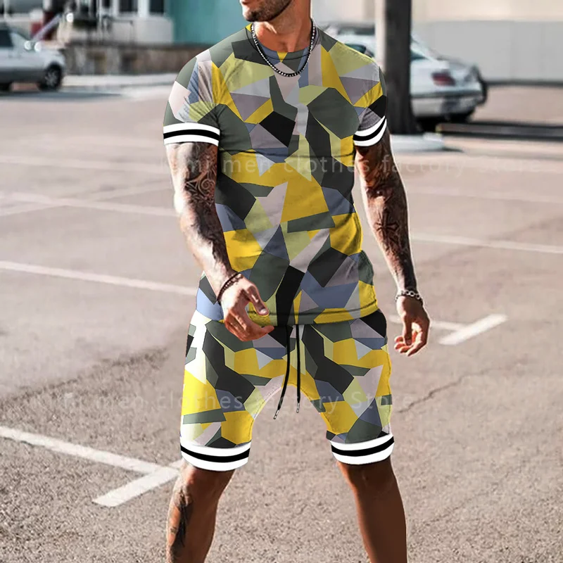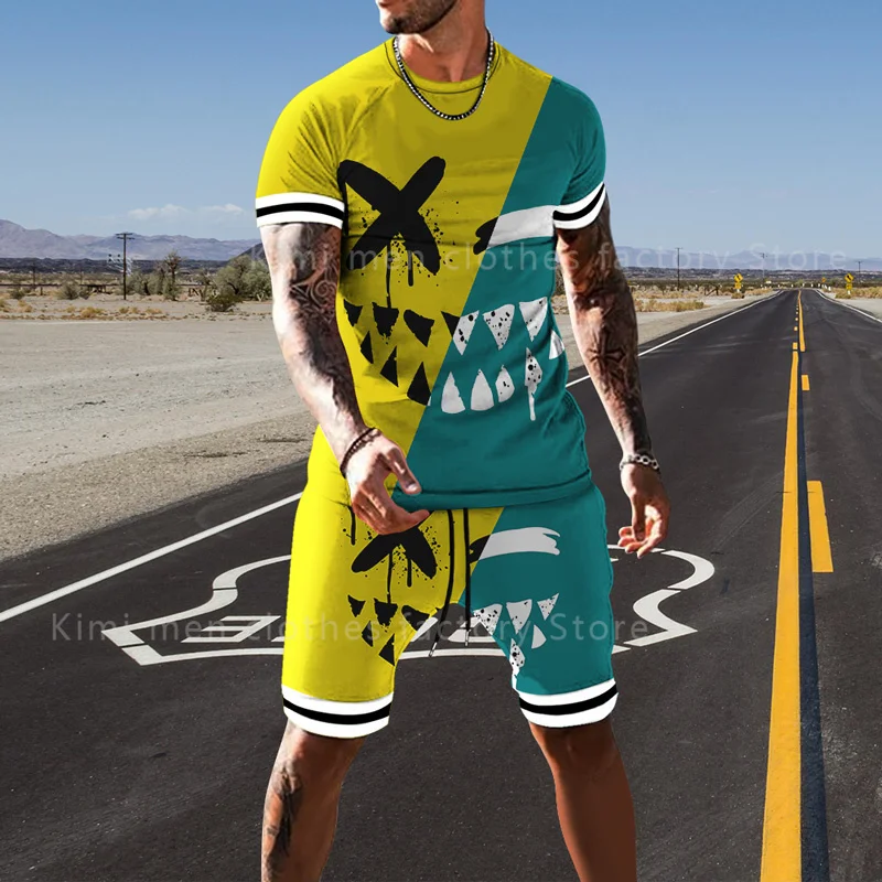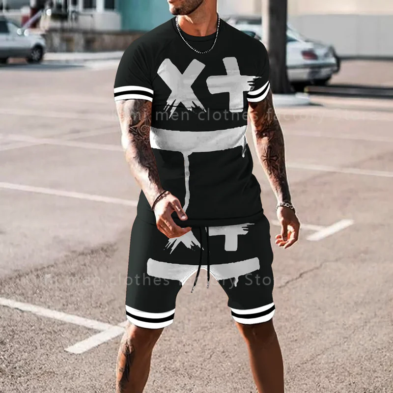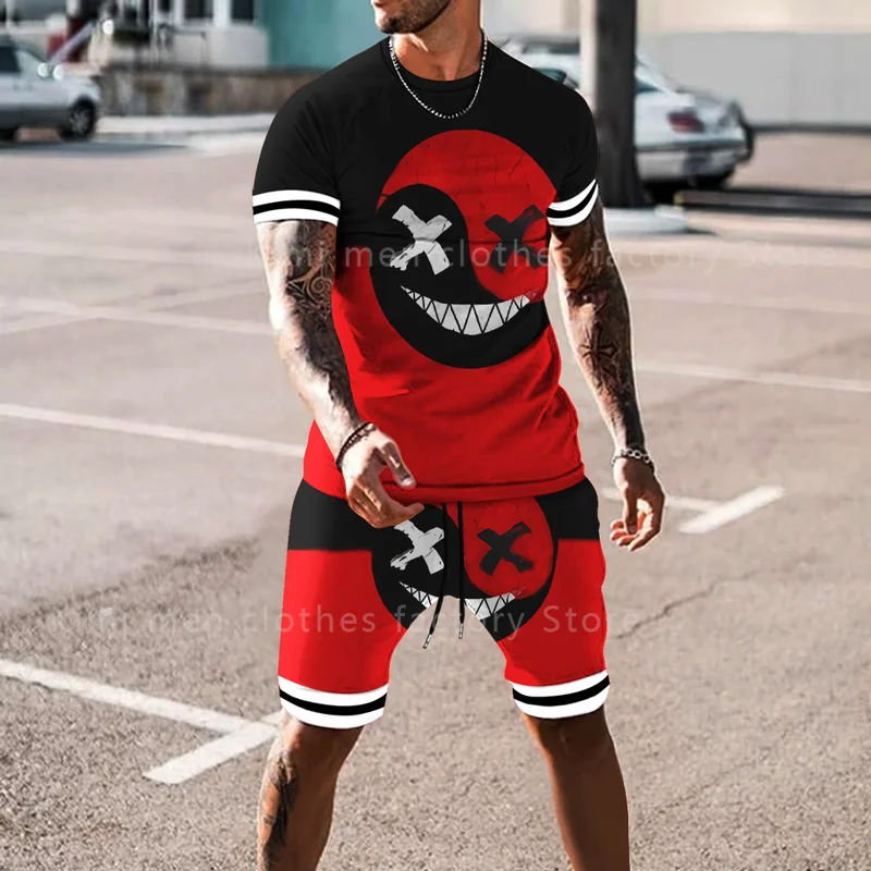 Летний модный мужской костюм, футболка, шорты, комплект из 2 предметов, спортивный костюм, мужская одежда большого размера, тренд, Ретро стиль, уличная одежда, смайлик, 3D принт