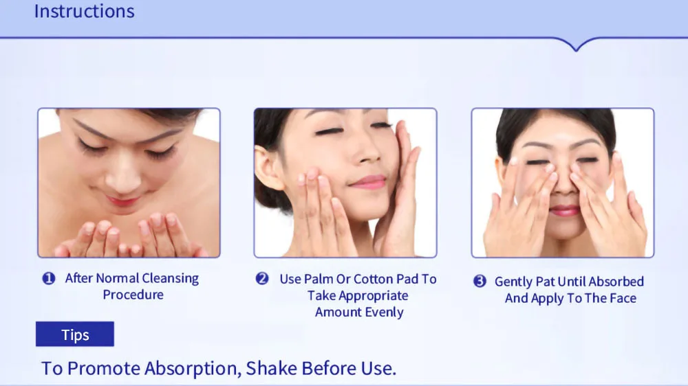 После очищения утром и вечером, Возьмите соответствующее количество этого продукта на ладони, нанесите его на лицо, массируйте круговыми движениями пальцами, чтобы помочь поглощению.