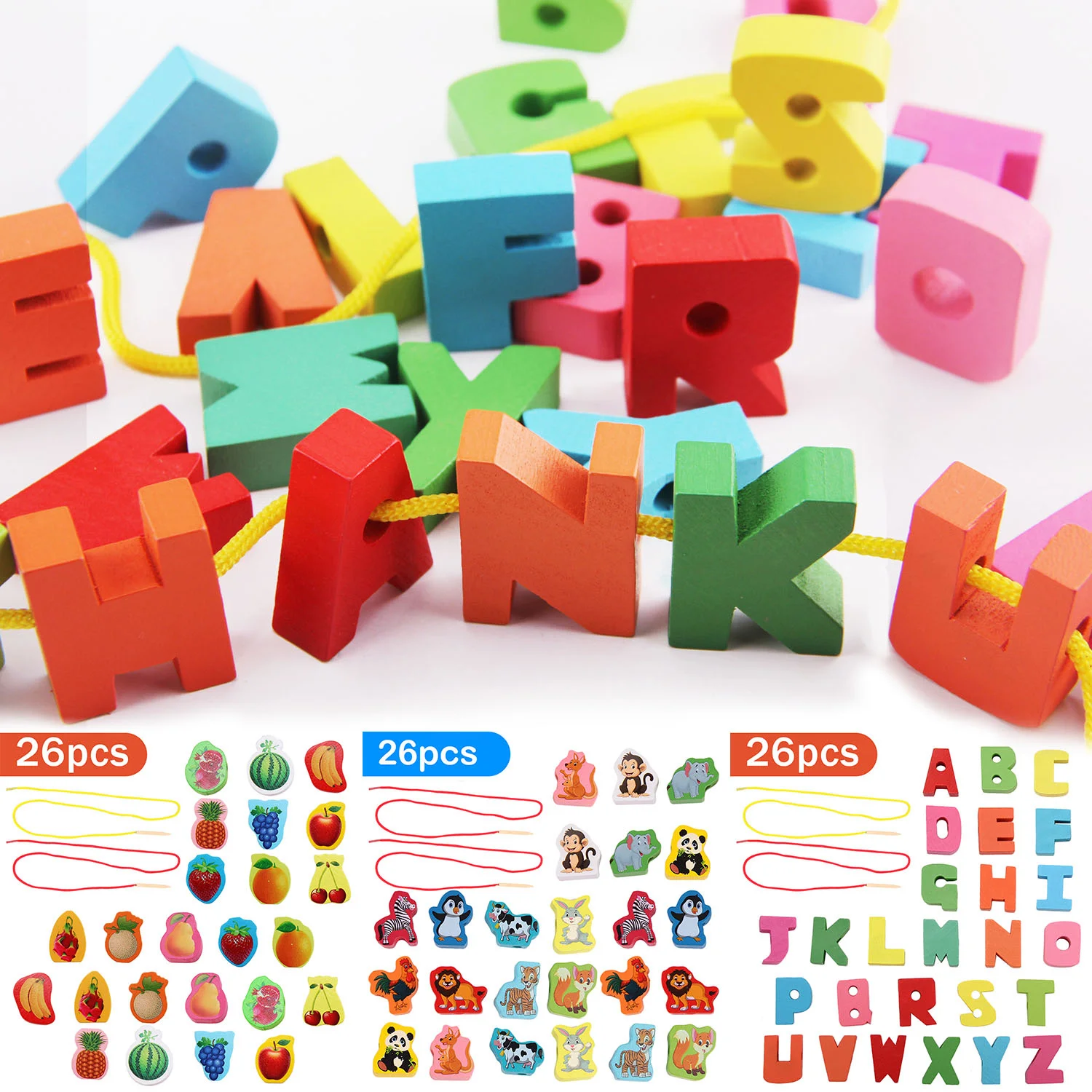 Детские 26 шт Монтессори DIY мультфильм животных Деревянный Цвет веревка бисером кружева бисером игра игрушка ювелирные изделия Производство2,80 долларовПесня