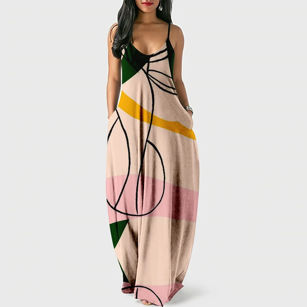Платье-макси без рукавов пикантный Повседневный пляжный сарафан с милым принтом