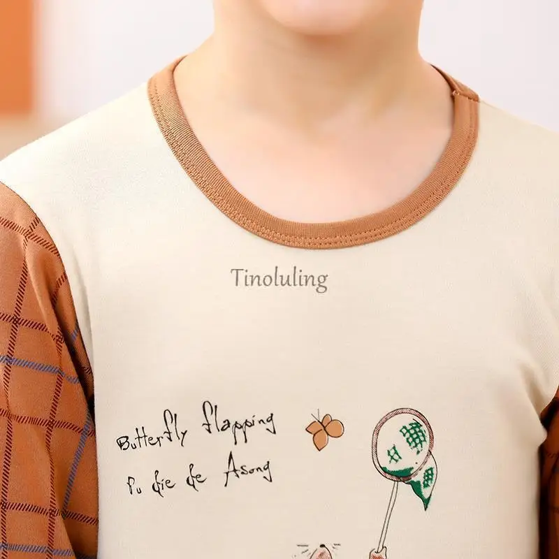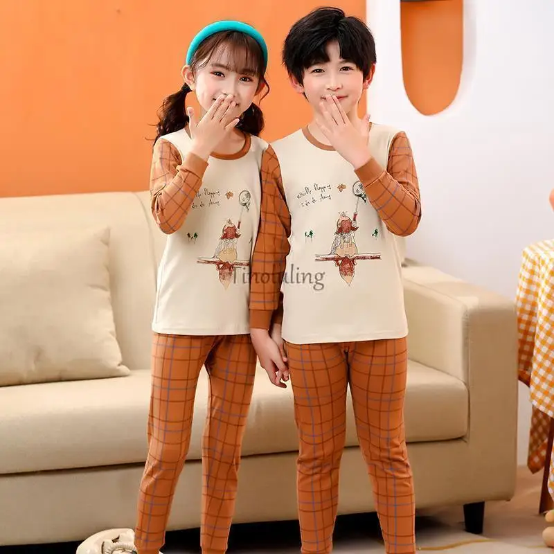 Весенне-осенние пижамные комплекты с длинными рукавами для мальчиков и девочек подходит для детей 2, 3, 4, 5, 6, 7, 8 От 9 до 14 лет