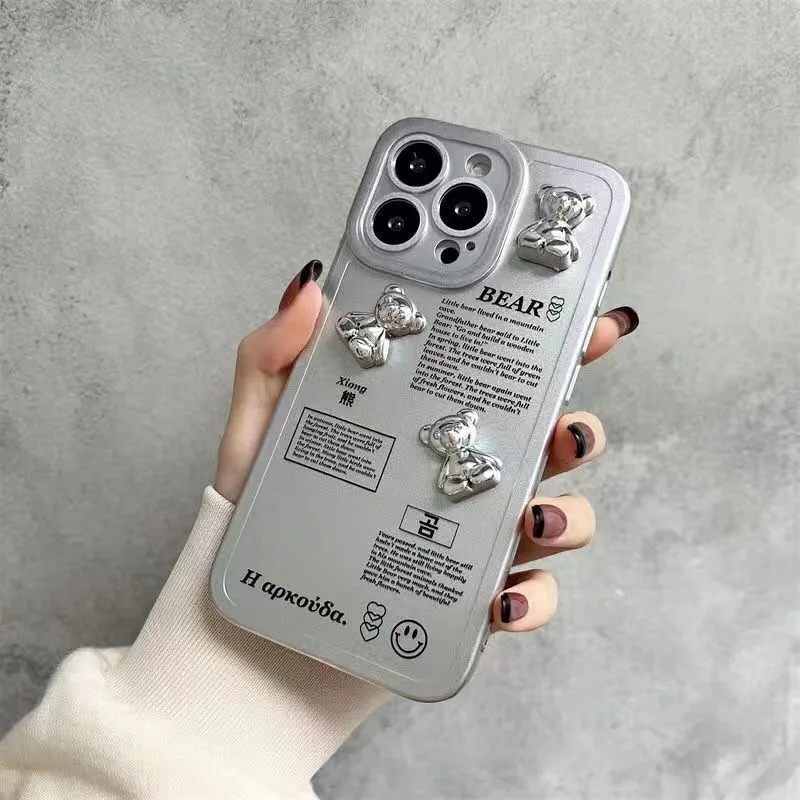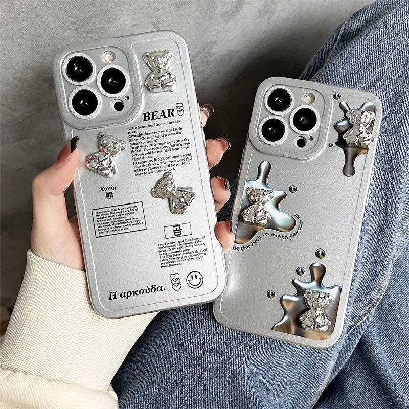 Шикарный мягкий чехол для телефона из ТПУ с 3D принтом медведя серебристого цвета для Xiaomi Redmi Note 11 Pro 10 4G 5G 10S 11S 9T 9S 9 Pro 8 7 9A 9C 10A Funda