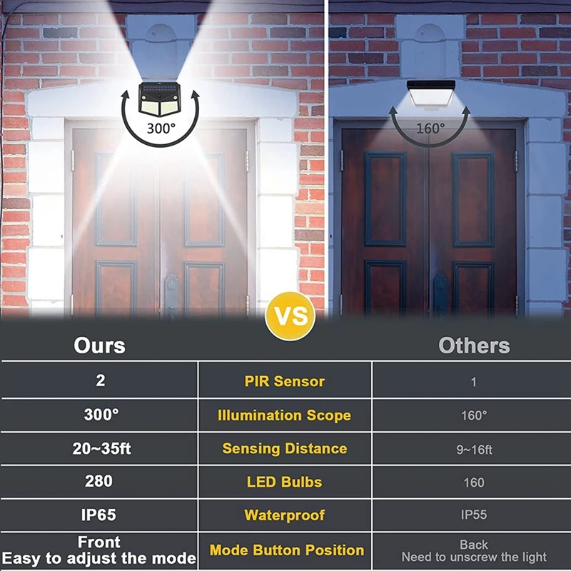 [Яркое свечение и более широкий светильник диапазона]-каждый солнечный светильник s наружный датчик движения имеет 280 светодиодный светильник и 300 ° светильник угол ing. Более светильник бусины и светильник ing угол означает, что вы получите ярче и шире светильник ing площадь после поглощения одной и той же солнца светильник. Эта лампа на солнечной батарее с датчиком движения на открытом воздухе отвечает потребностям пользователей. И эти солнечные огни датчик движения может обеспечить отличную яркость и больший охват освещения для вашего двора, сада, гаража, забора и так далее.