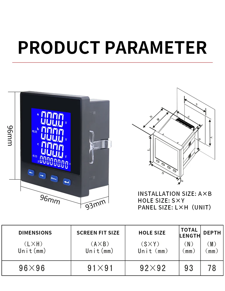 Многофункциональные счетчики мощности с такими функциями, как коммуникация и передача импульсов и выход, могут выполнять Измерение мощности, измерение мощности, отображение данных, сбор и передачу данных и могут широко использоваться в автоматизации подстанций, автоматизация распределения электроэнергии интеллектуальных зданий, Измерение внутренней мощности, управление и управление предприятиями. Оценка. Точность измерения составляет 0,5, понимая, светодиодный дисплей поля и дистанционное RS-485 цифровой интерфейс связи с использованием MODBUS-RTU протокол передачи данных