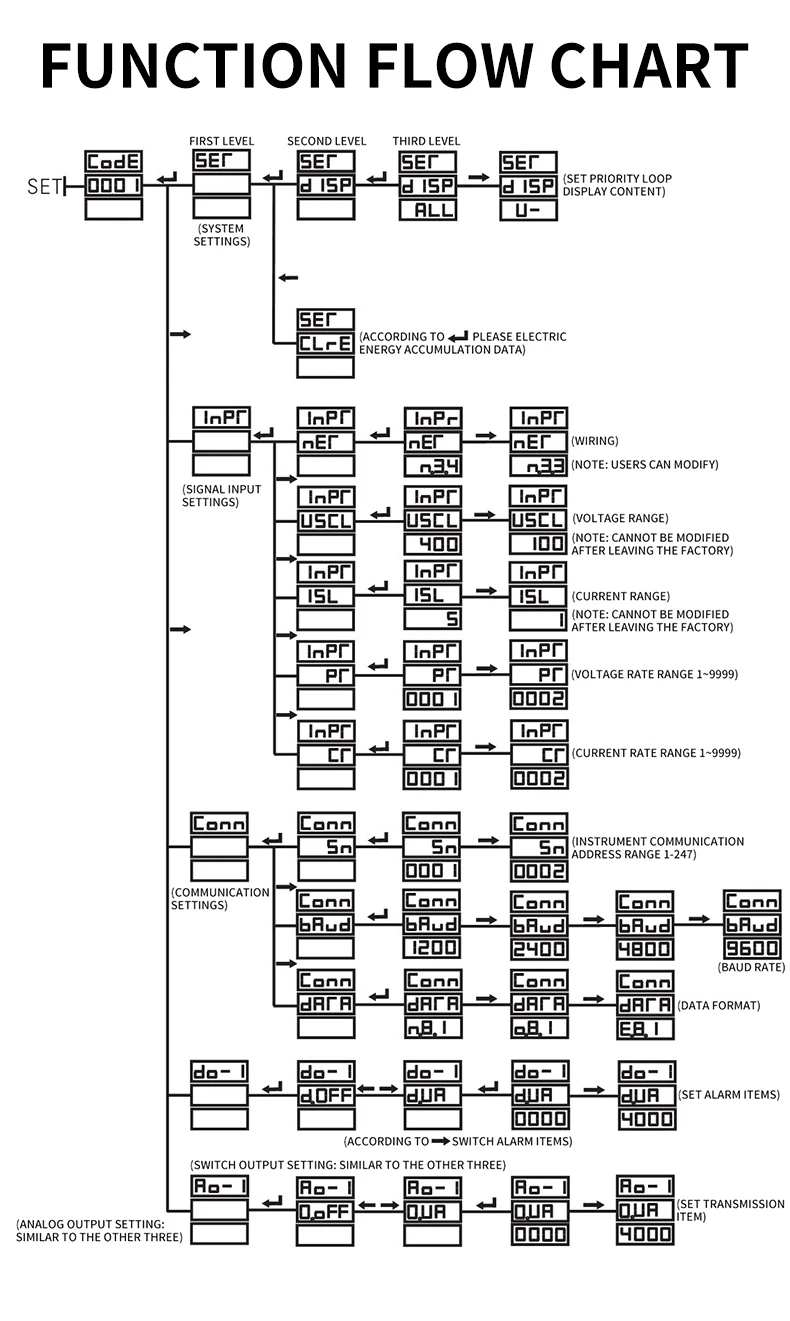 Коммуникация: Интерфейс связи RS485, физический отсек. Соответствует международному стандарту MODBUS-RTU протокола. Скорость связи составляет 1200 ~ 9600. Метод действия N81, E81, O81