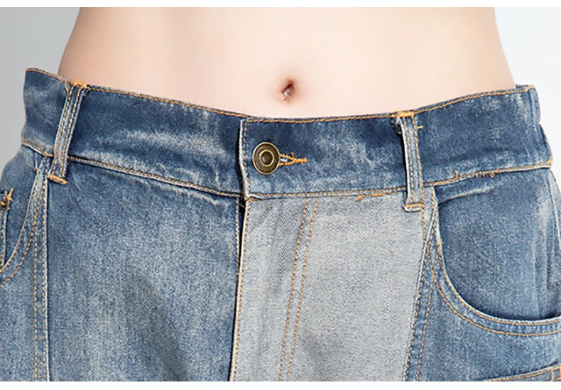 Винтажные дизайнерские женские весенние светло-голубые Лоскутные Джинсовые штаны-шаровары с эластичной талией, уличная одежда