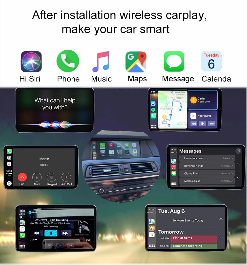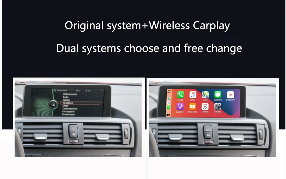 Этот удивительный набор добавляет полную функциональность CarPlay к существующему CIC или NBT, сохраняя при этом все оригинальные функции CIC или NBT. Система CarPlay поддерживает управление кнопками и рулевым колесом и интегрирована с консолью или перчаточным боксом USB.
