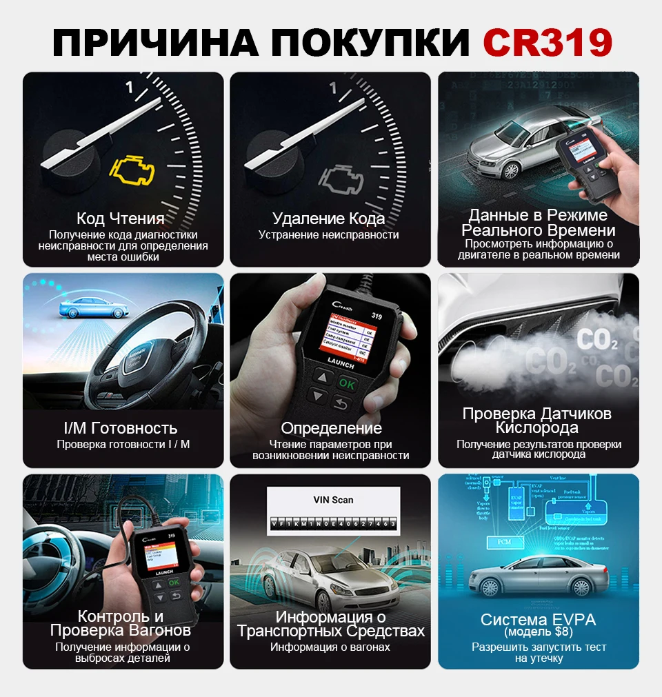 СОВЕТЫ: Если вы не можете подтвердить, поддерживает ли cr319 ваш автомобиль, пожалуйста, свяжитесь с нами и сообщите нам модель и год производства и страну или VIN, мы поможем вам подтвердить это.