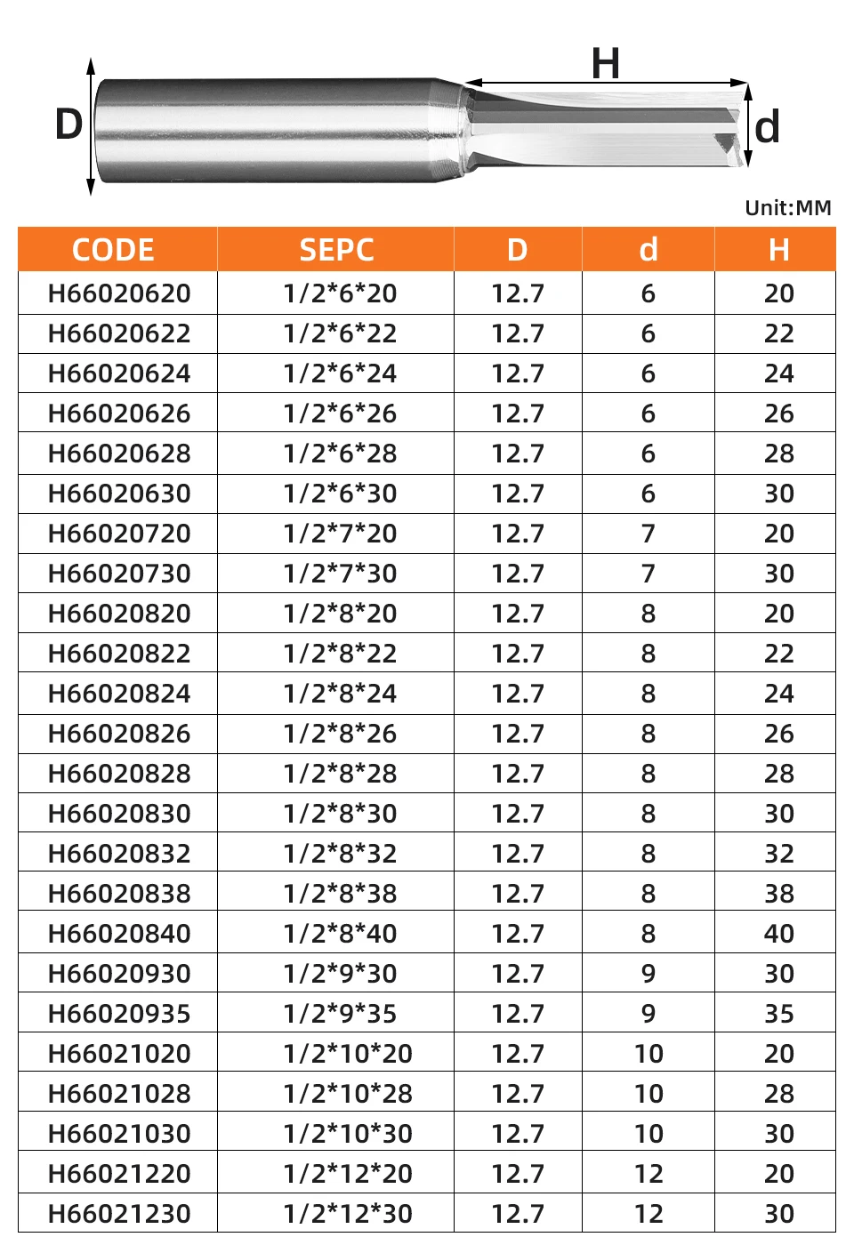 Диаметр хвостовика: 1/2 хвостовика
