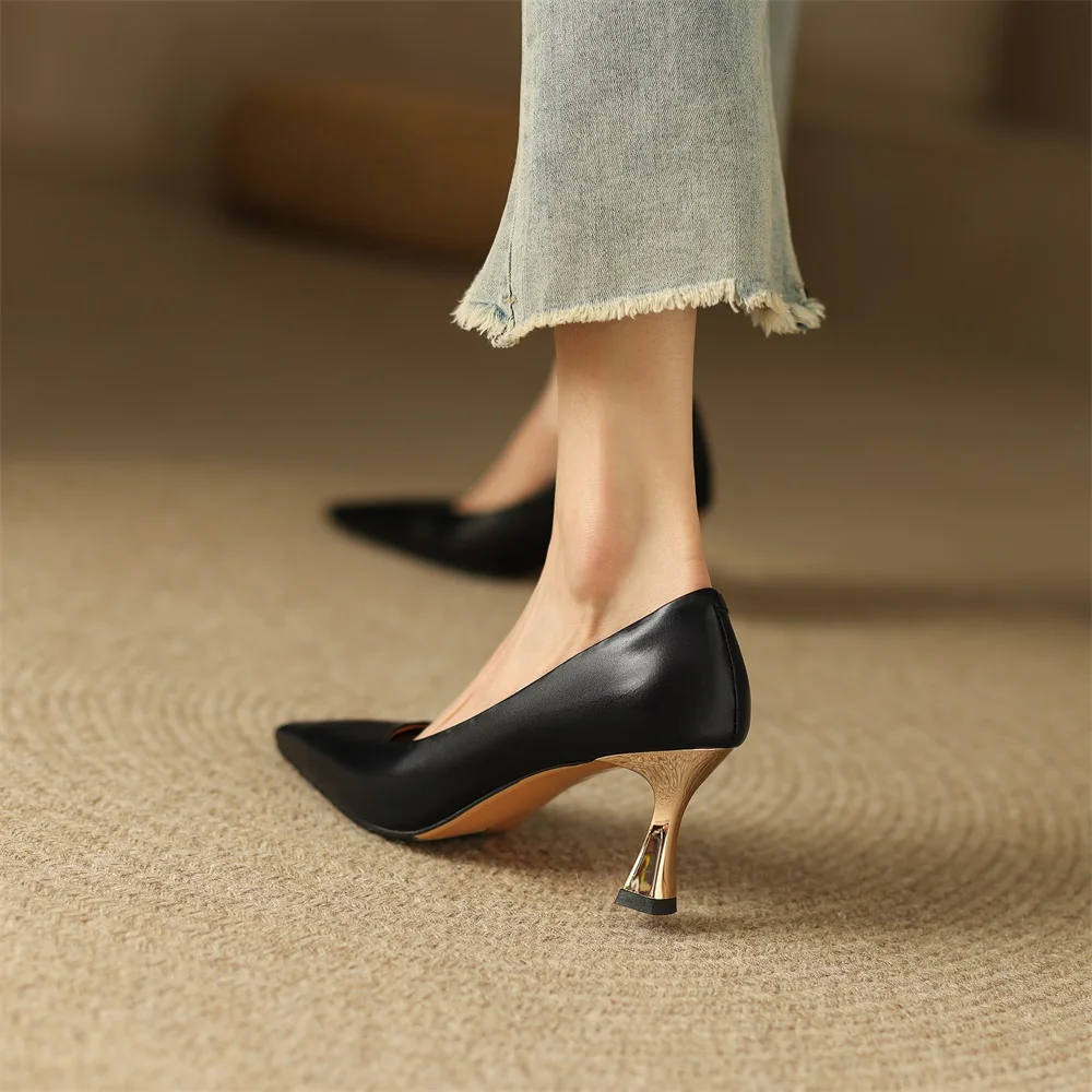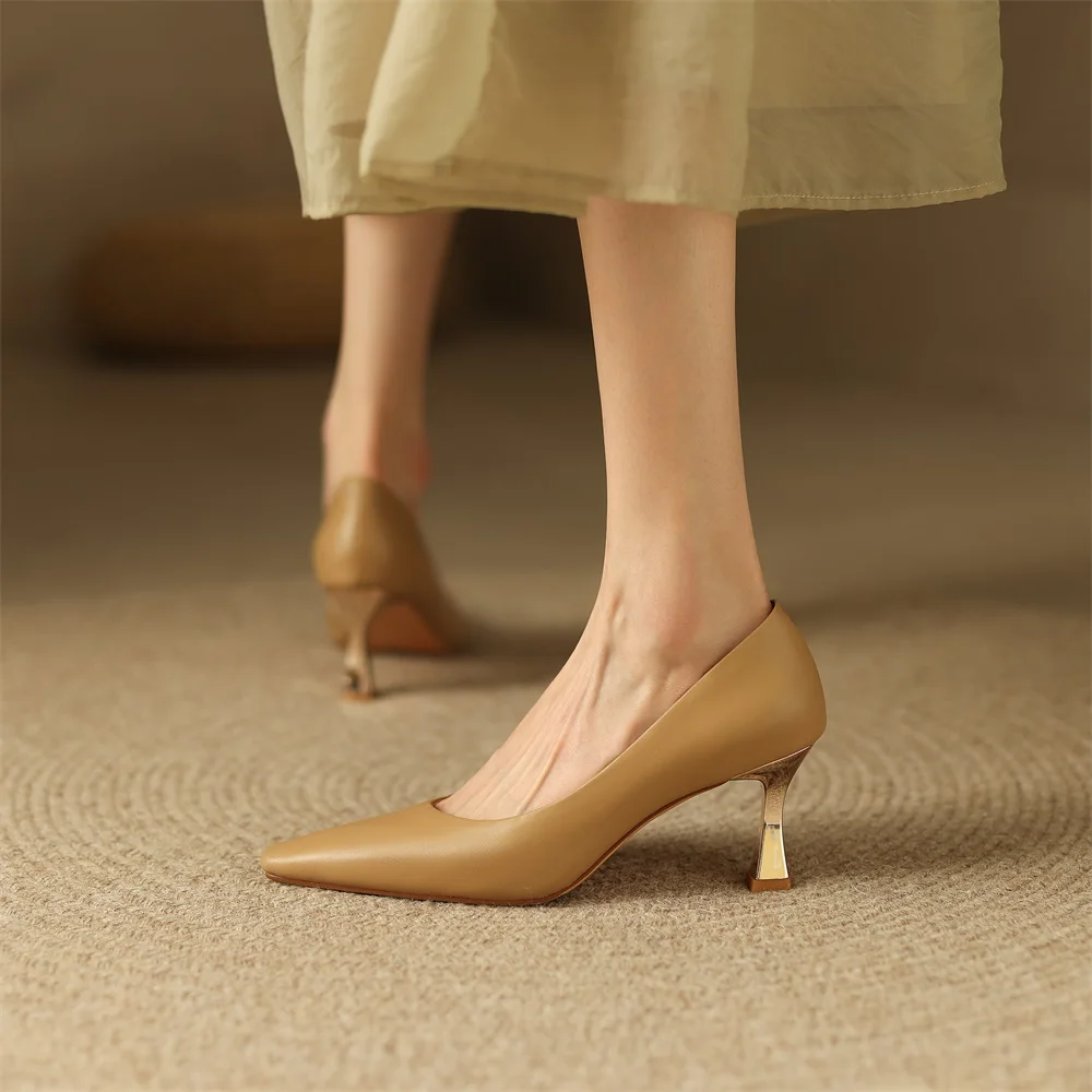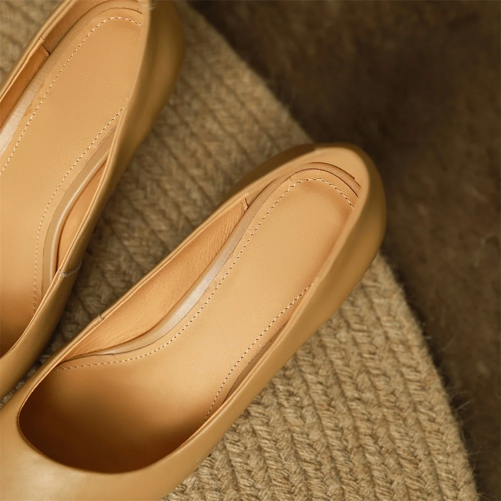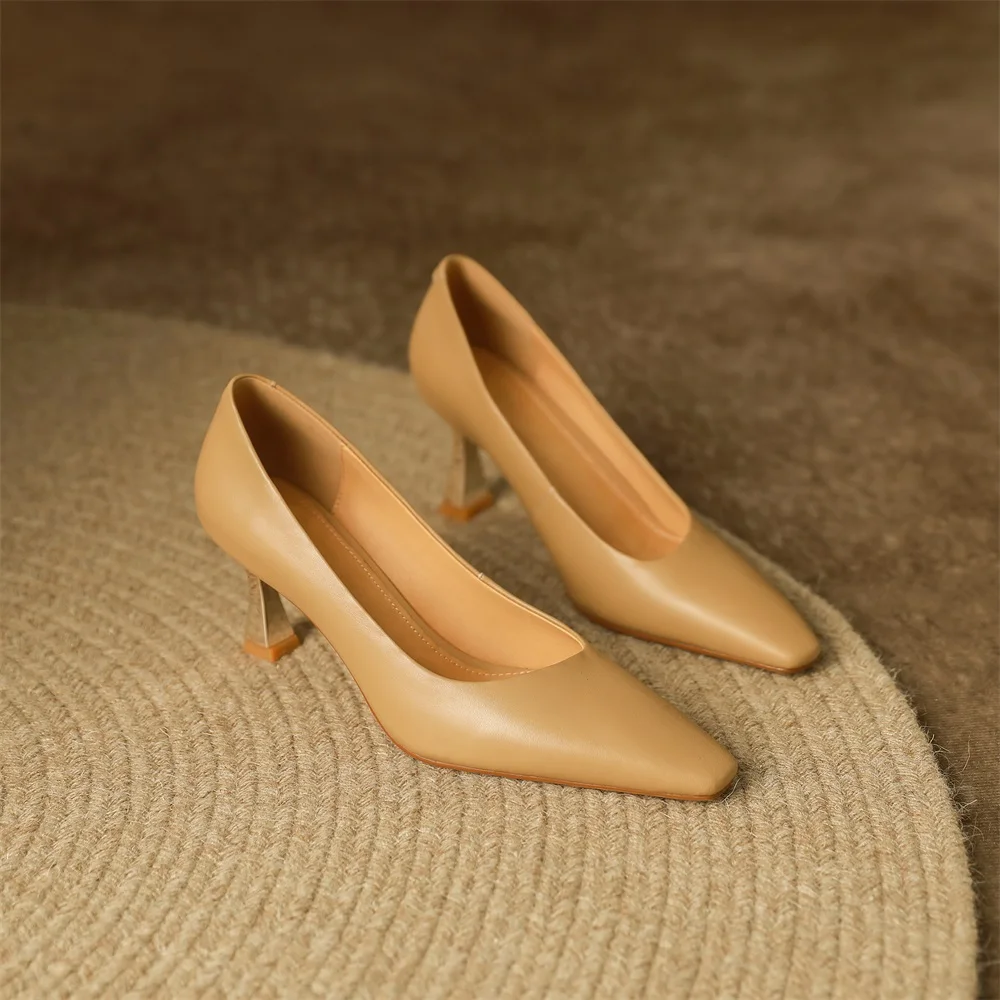 Kanseet/Коллекция 2022 года; Женская обувь; Новое поступление; Весенние офисные женские туфли-лодочки на высоком каблуке без шнуровки с квадратным носком из коровьей кожи ручной работы; Абрикосовый цвет